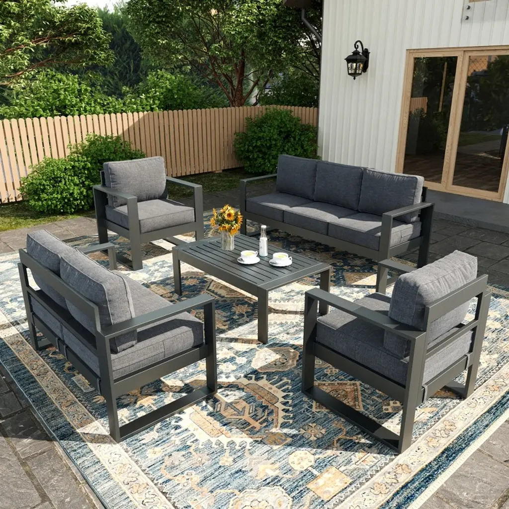 Enhance your outdoor living space with the Captiva Designs 5pc Patio Dining Set. Experience durability with the mesh top square steel table, designed to resist weather elements. Stack the sling aluminum chairs effortlessly for convenient storage and space-saving. Enjoy comfort and ventilation provided by the breathable mesh seating. Maintain the set easily with minimal upkeep. Create inviting gatherings with this stylish and practical patio collection.