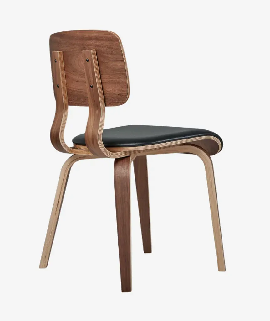 The Cardinal Chair takes the pioneering Mid-century design process of bent-plywood engineering and applies modern touches to create a new icon of form and function. The chair is an aesthetic journey – from its sculptural wood frame and delicate exposed-ply detail, to its premium leather seat, waterfall front edge and visible back hardware. A padded seat and ergonomic curved back add durability to match, giving Cardinal that coveted balance of style and versatility.