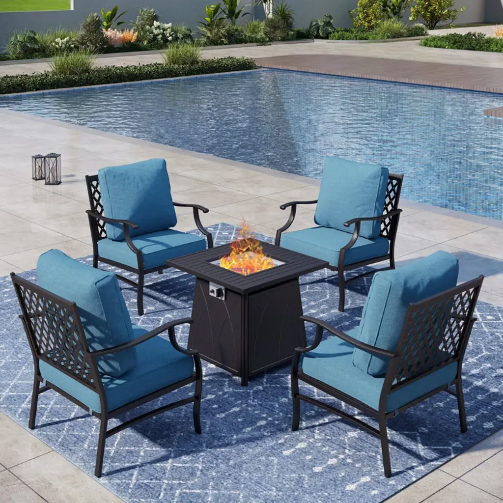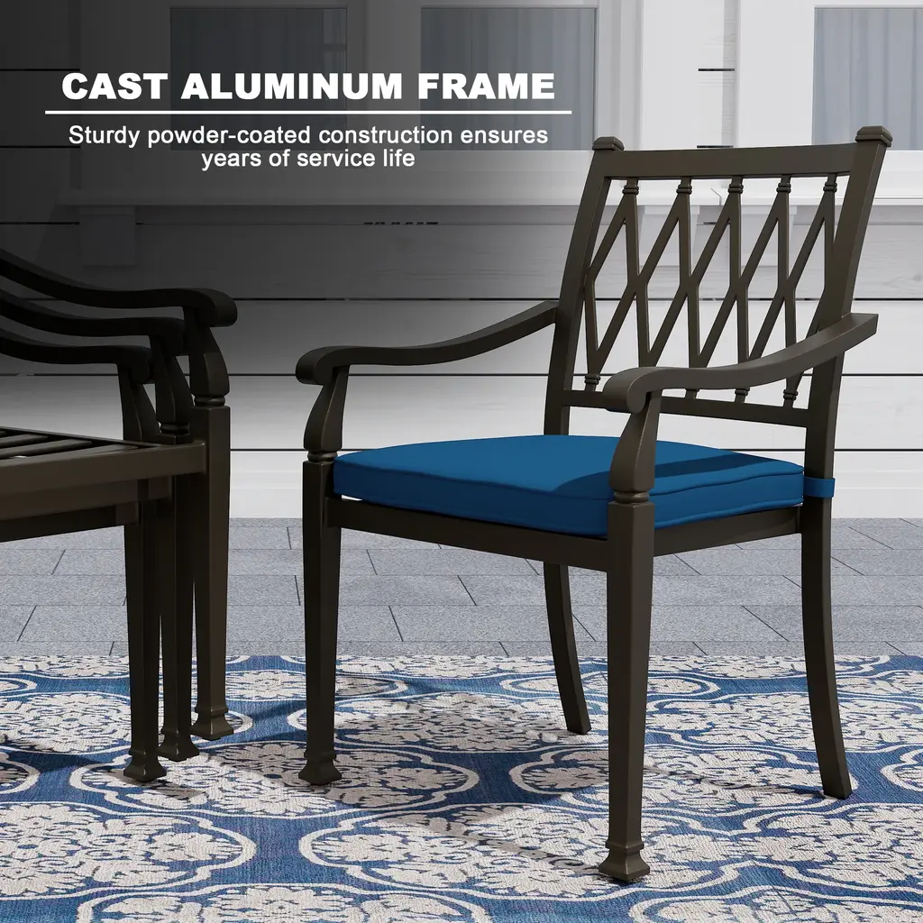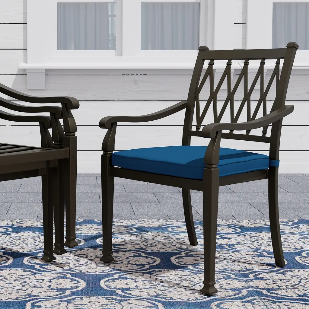 Cast Aluminum Outdoor Dining Armchair With Cushion (Set Of 4) - Blue