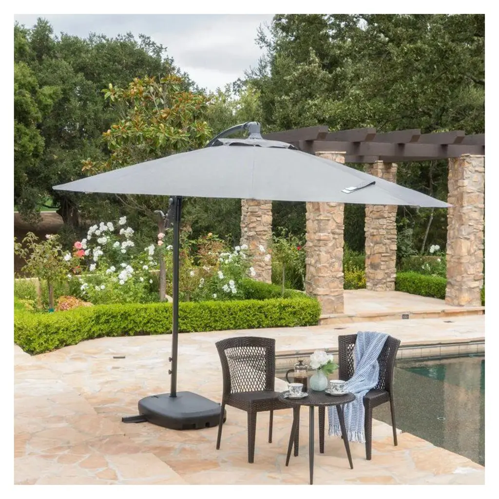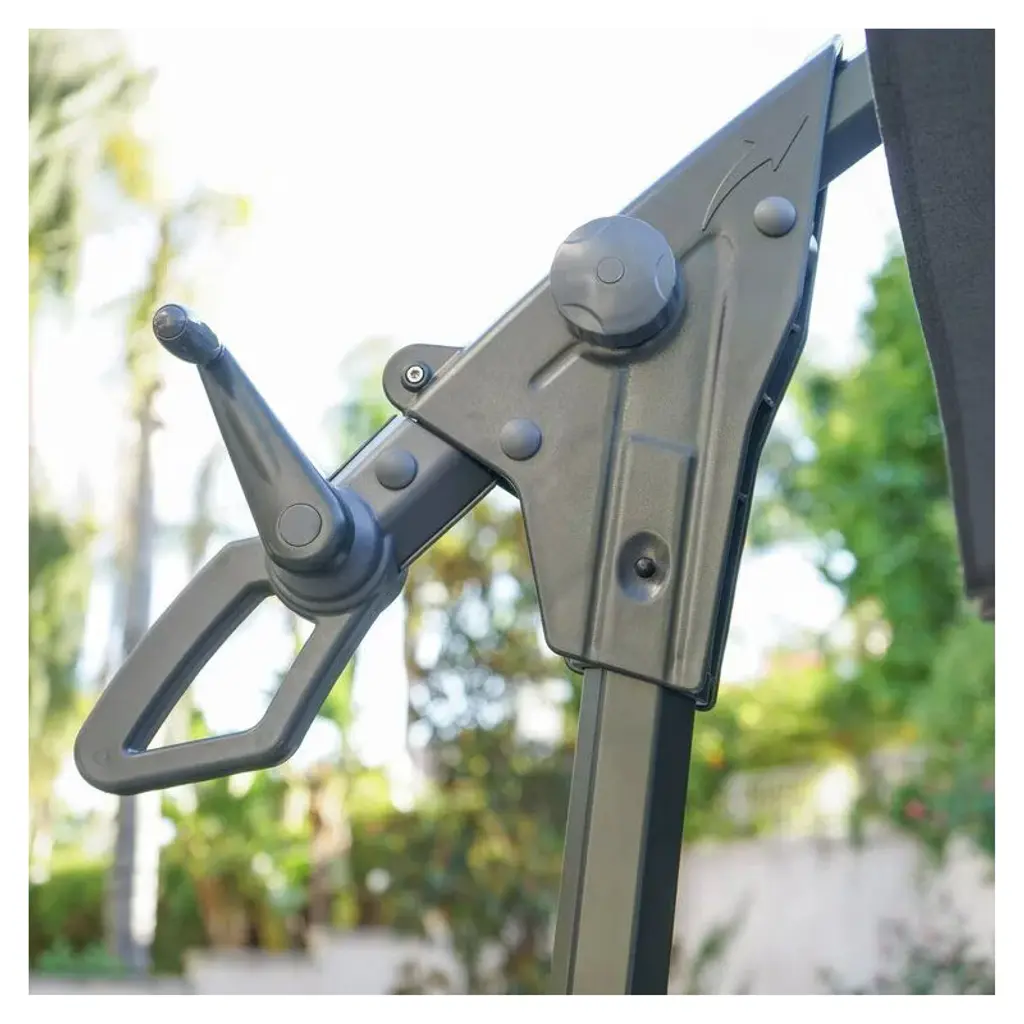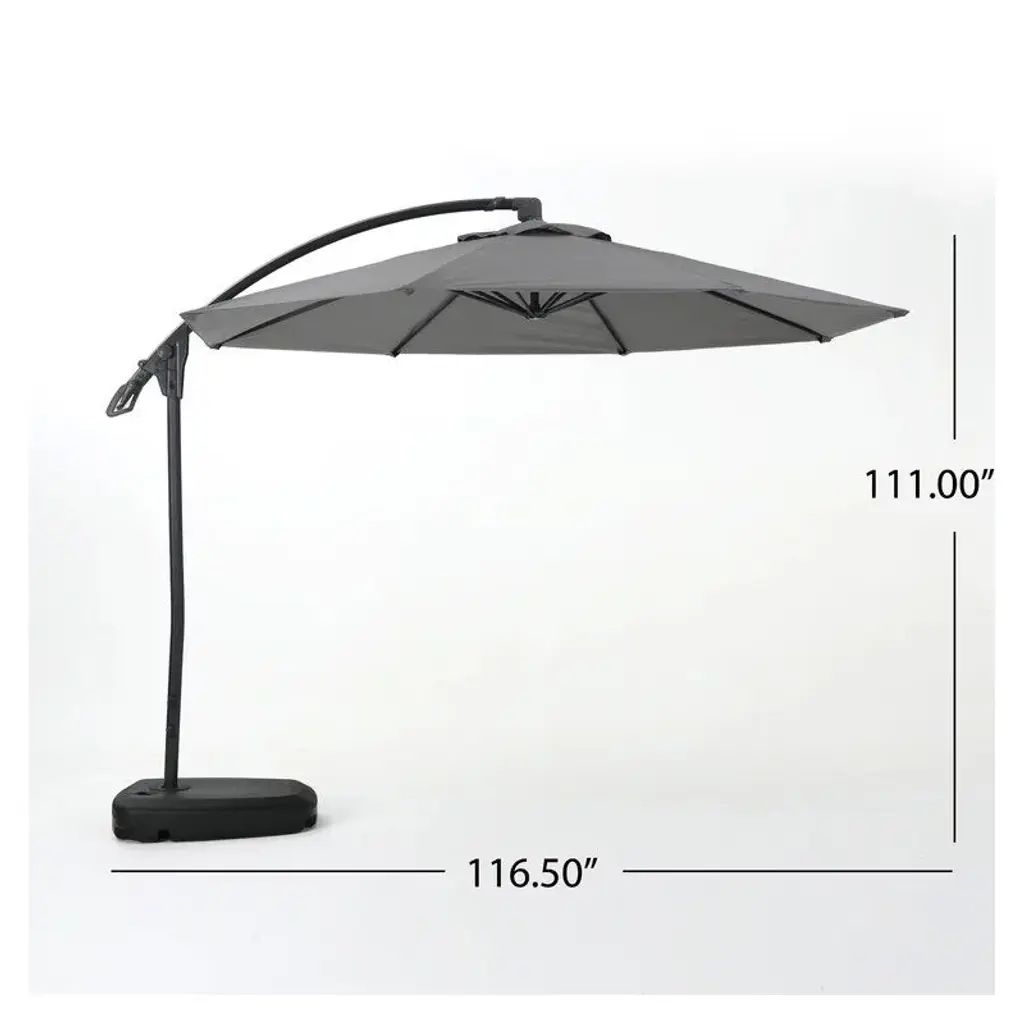 Cavinas Modern 10 Ft Aluminum Cantilever Umbrella Crank Lift Mechanism+wind Resistant Resin Base, Outdoor Shade For Dining Sets, Gray