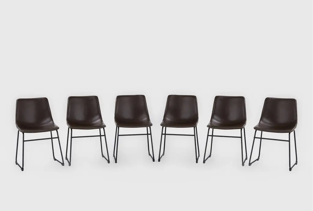 Contoured for comfort and style, our Cobbler dining side chair brings an on-trend look to your entertaining space for less. Black powder-coated metal legs stand sleek and sturdy, while faux leather upholstery and a bucket seat offer tailored, handsome sophistication at an incredible value. Contrast baseball stitching detail is the perfect finishing touch.