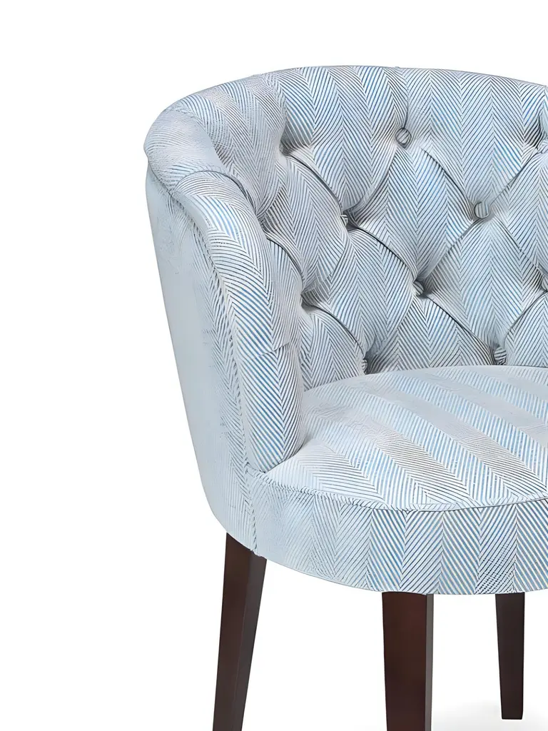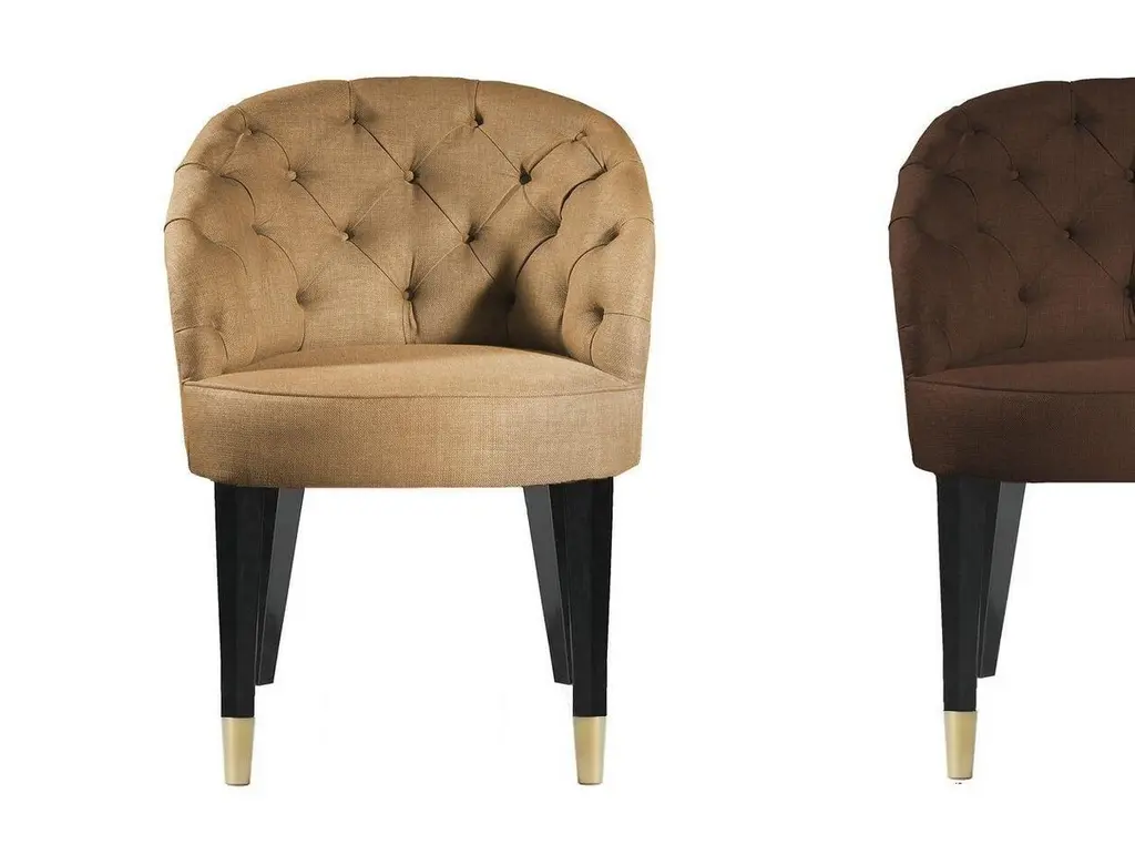 Timeless design featuring tufted back and solid wood legs in ebony finish. Upholstered in performance woven fabric in variety of colors.Optional frontal legs metal caps in brass finish.Available in other wood finishes and lacquers.COM available upon request.This product is fully made in the European Union (EU) in compliance with European Union manufacturing and safety standards.Contact us to enquire about COM/COL production, requirements and material shipping instructions.Please contact us if you have any questions about customization and pricing. We will be glad to check with the factory’s technical team if sizes, finishes, and colors can be customized. We do our best to expedite production and to ship and deliver product within the listed lead time, however current lead times might be longer due to global shipping backlog and delays. These delays are out of our control and cannot be a reason to cancel an order.