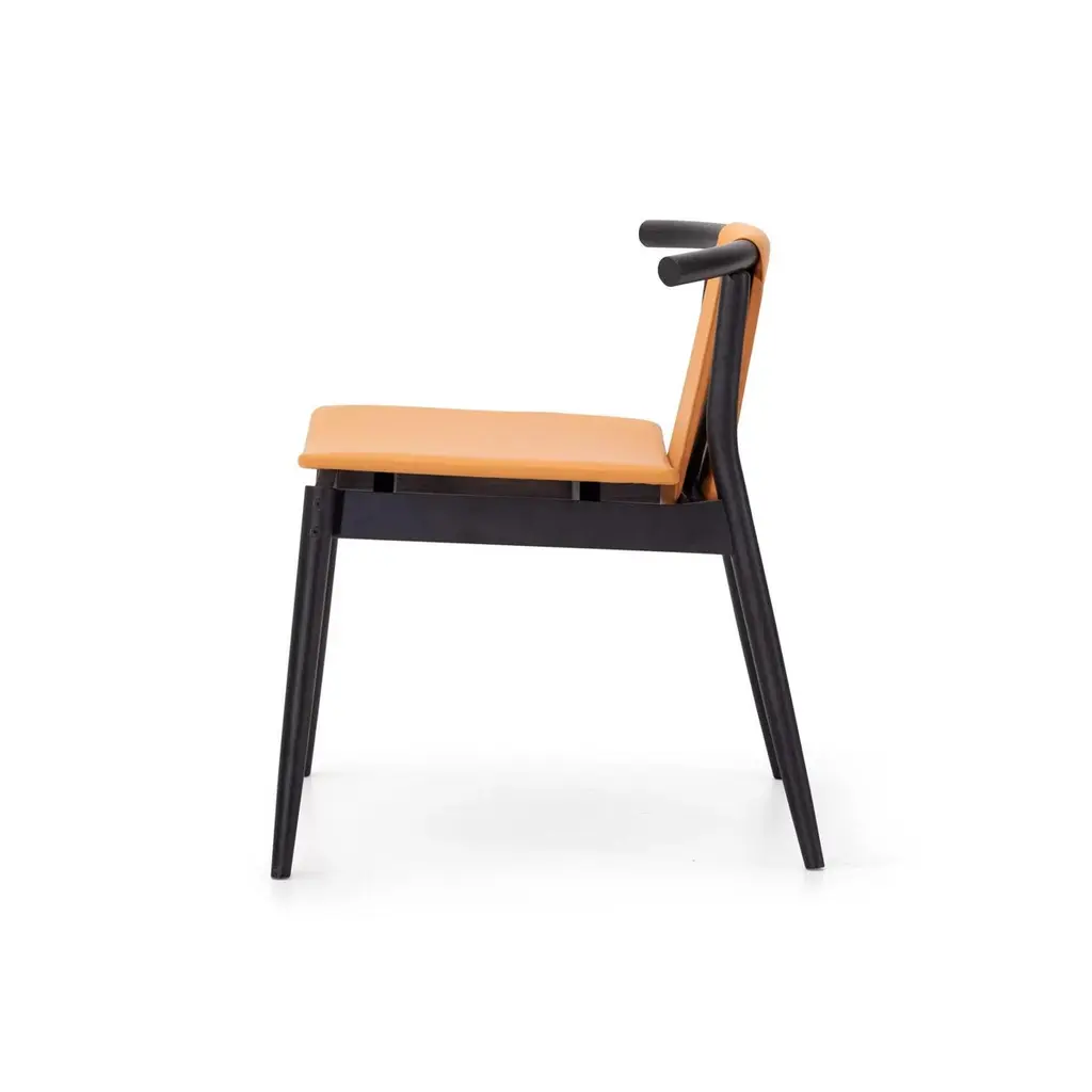 The Japanese aesthetic canons mark the starting point in this exercise of formal synthesis. The lines that make up the volumes of the product are simplified to give rise to a very direct and structured design, in which the shape is strongly defined by the function of the chair itself.The raised seat brings lightness to the product, and allows you to see how the product has been built. The soft curvature of the backrest contrasts with the straight-lined seat. This same thickness shares with the legs, becoming lines that draw the piece forcefully, which is accentuated in the version without upholstery. The upholstered version covers the design and gives it a warmer approach.Handmade in Europe.We will be glad to check with the factory’s technical team if sizes, finishes, and colors can be customized. We do our best to expedite production and to ship and deliver product within the listed lead time, however current lead times might be longer due to global shipping backlog and delays. These delays are out of our control and cannot be a reason to cancel an order..