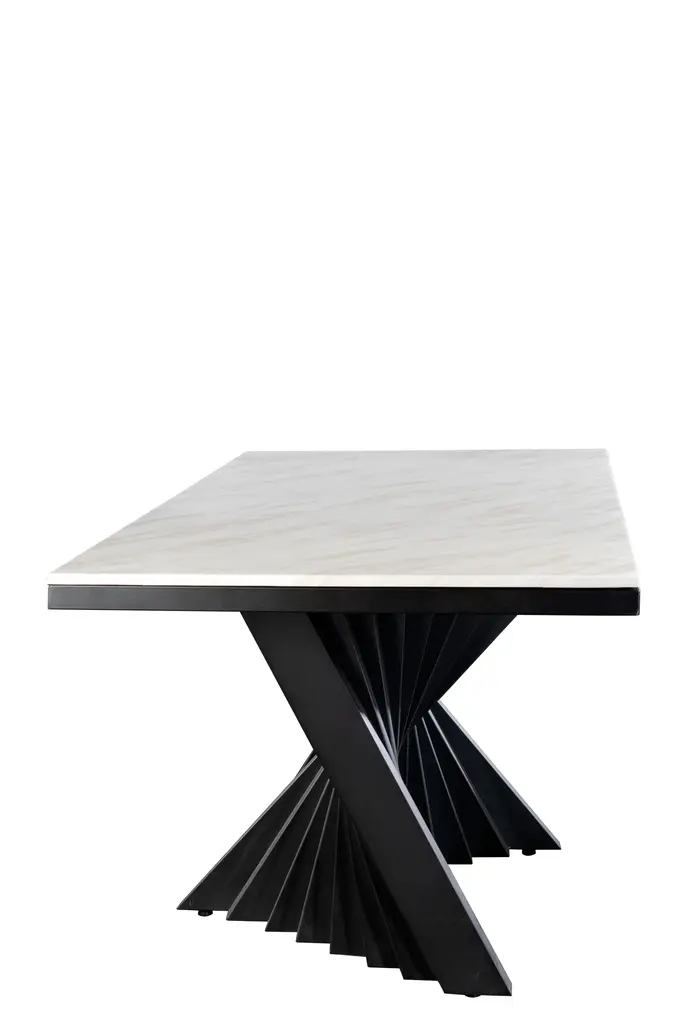 Contemporary White Marble Top Waterfall Dining Set - 9 Pieces