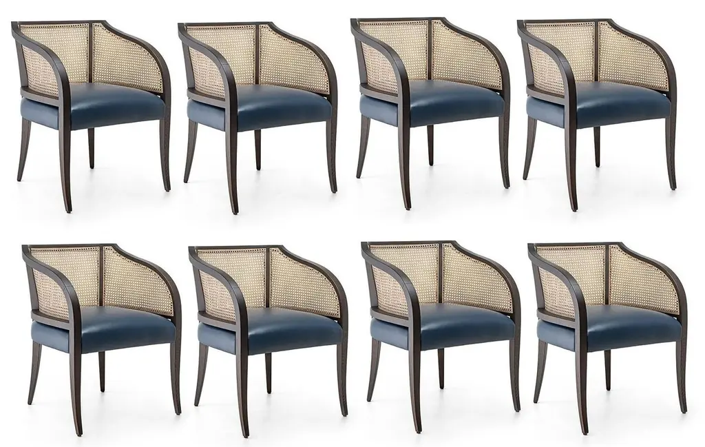 Contemporary Woven Cane Dining Chairs, Set Of 8