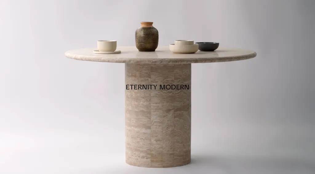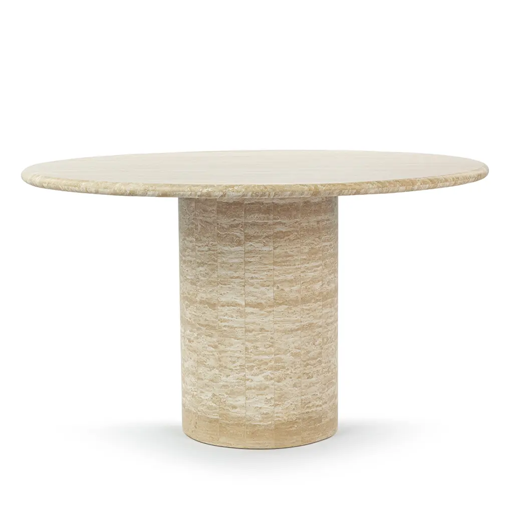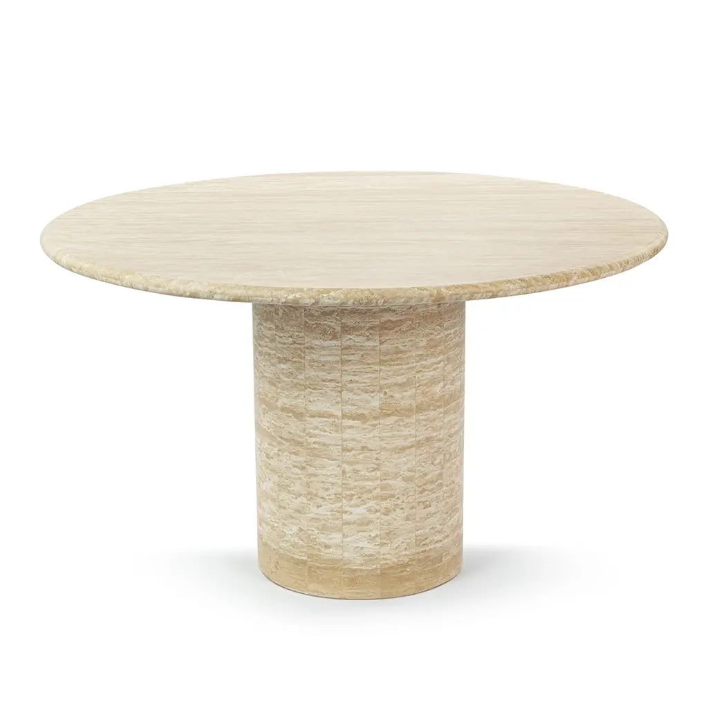 Cosette Round Travertine Dining Table With Cylinder Pedestal Base