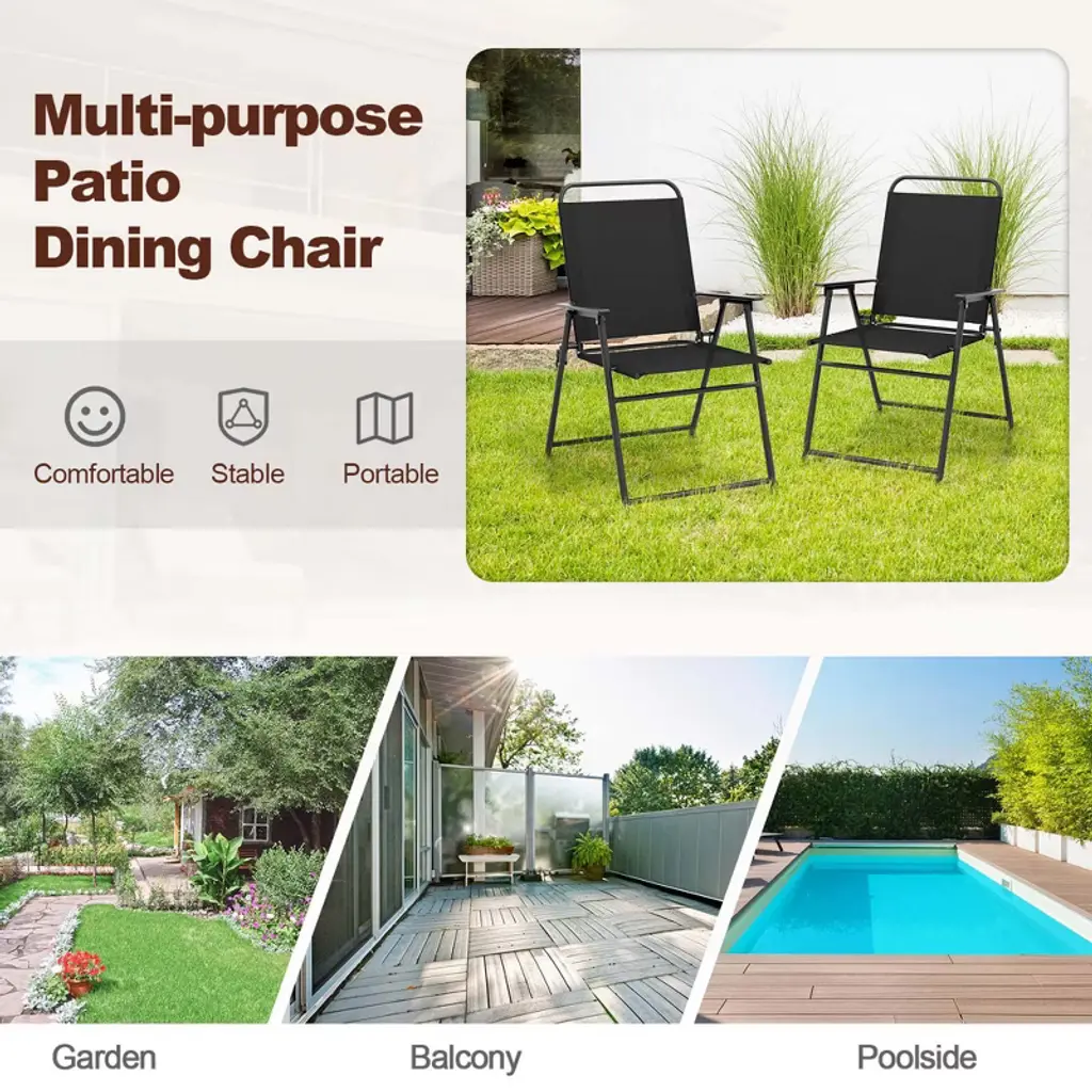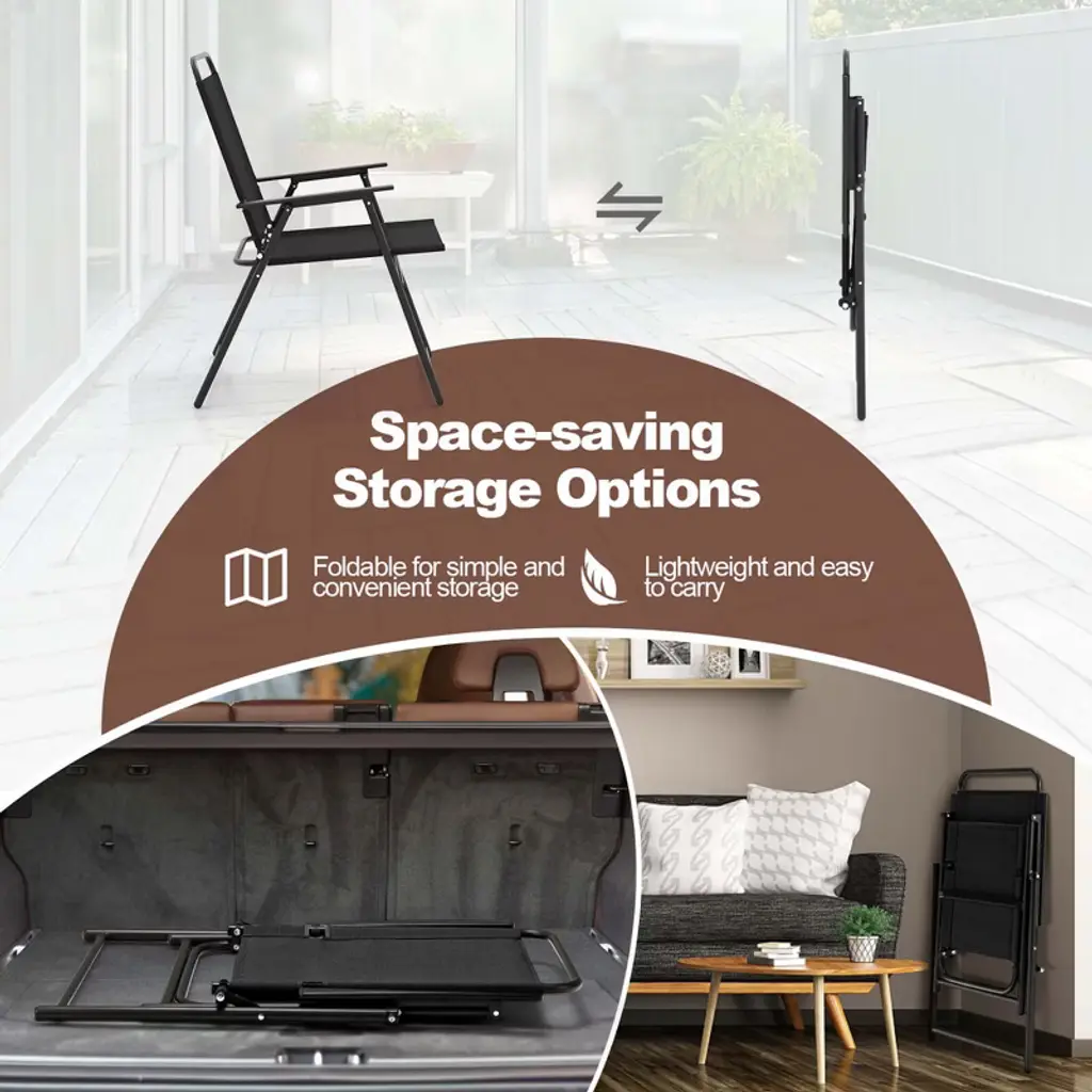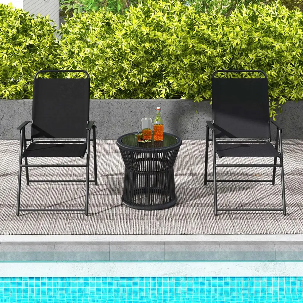 Costway 2Pcs Patio Folding Sling Chairs Dining Armrest Backrest Outdoor Portable Black