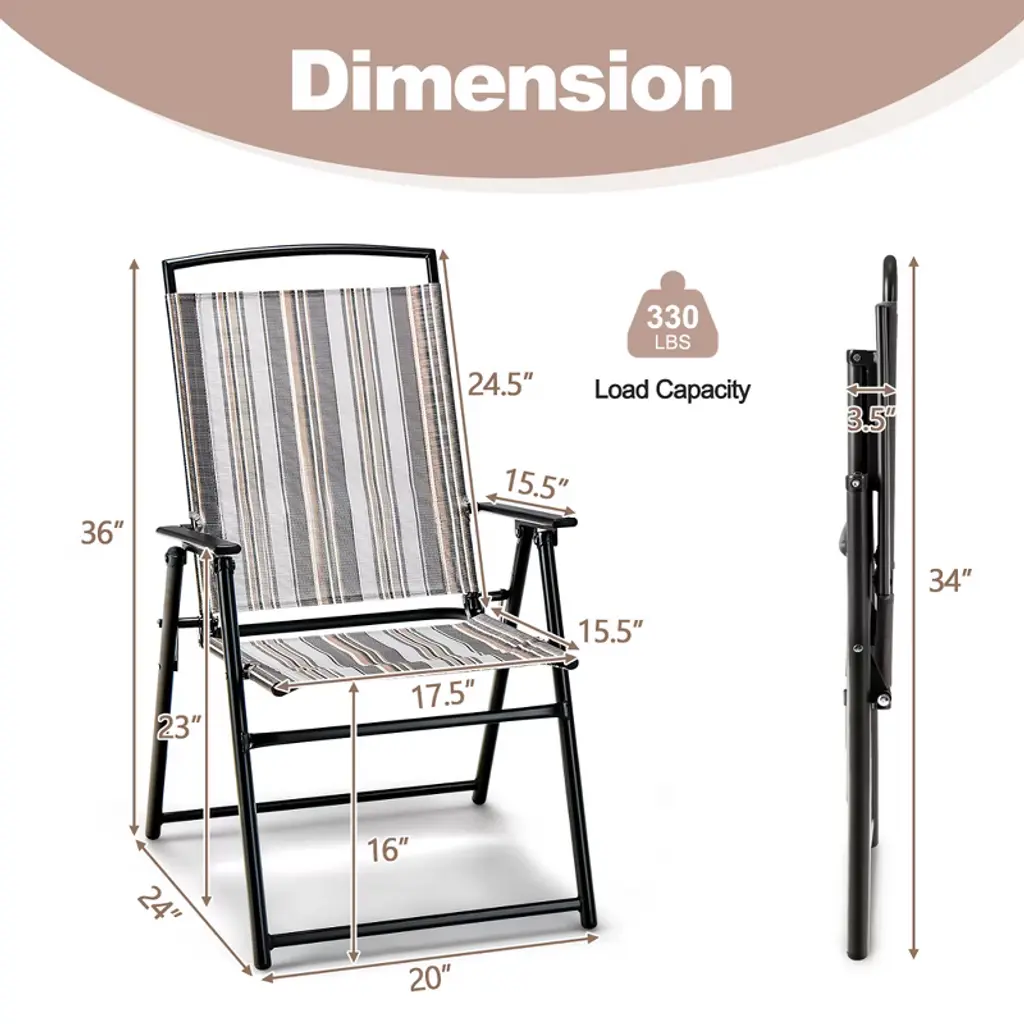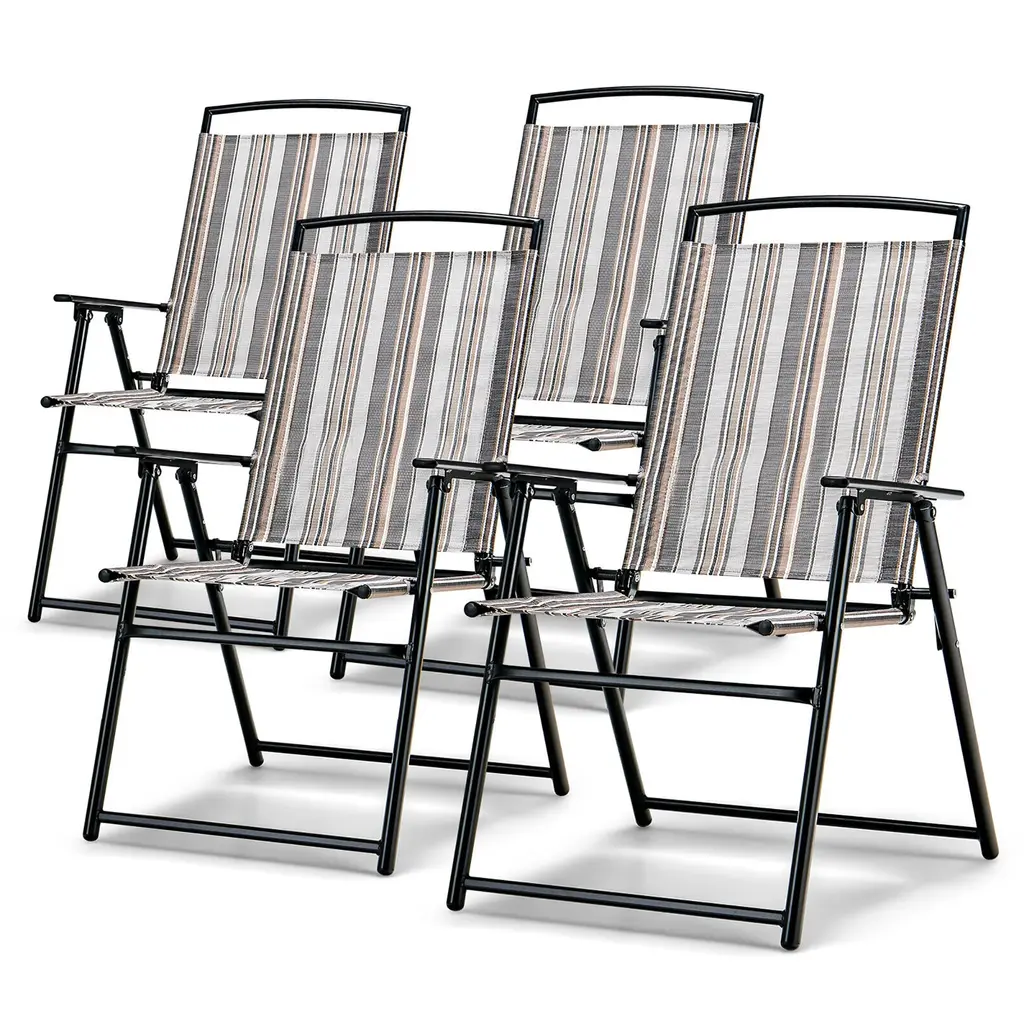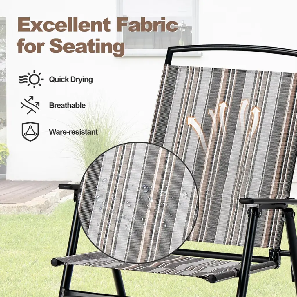 Costway 2Pcs Patio Folding Sling Chairs Dining Armrest Backrest Outdoor Portable Streak