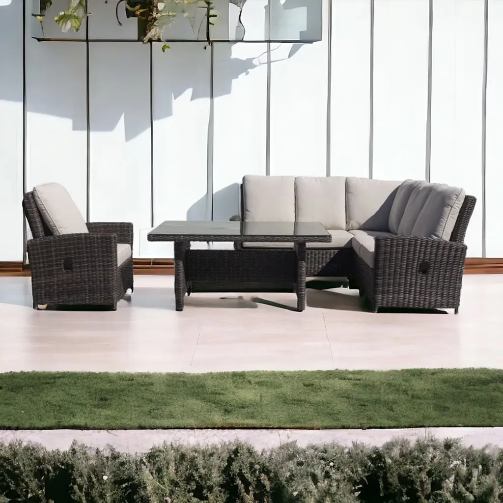 Courtyard Casual Cheshire 5 Pc Chow Dining Recline Sectional Set With Club Chair