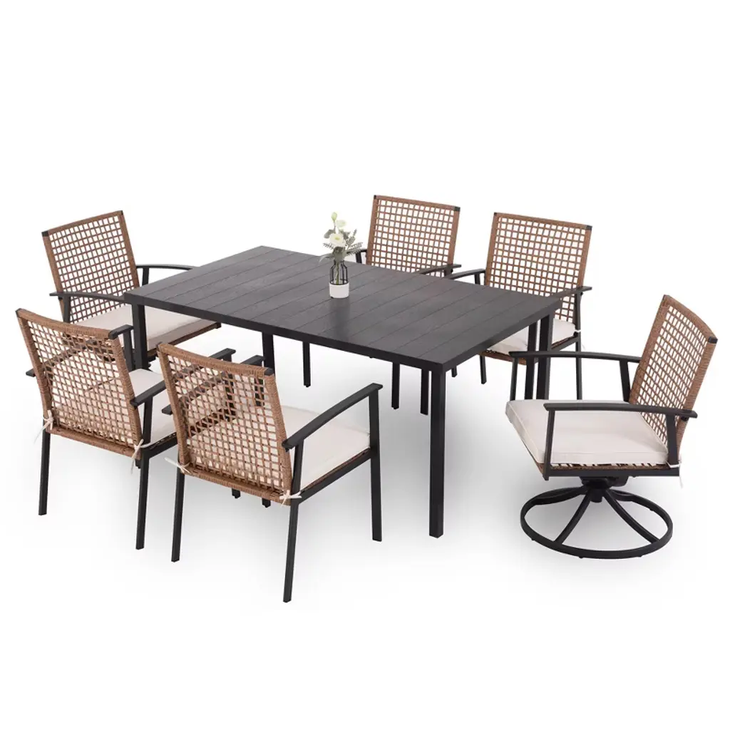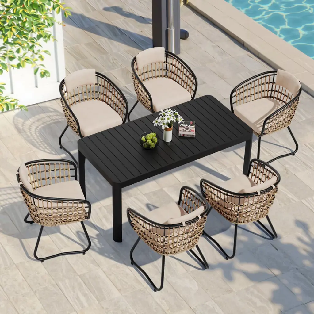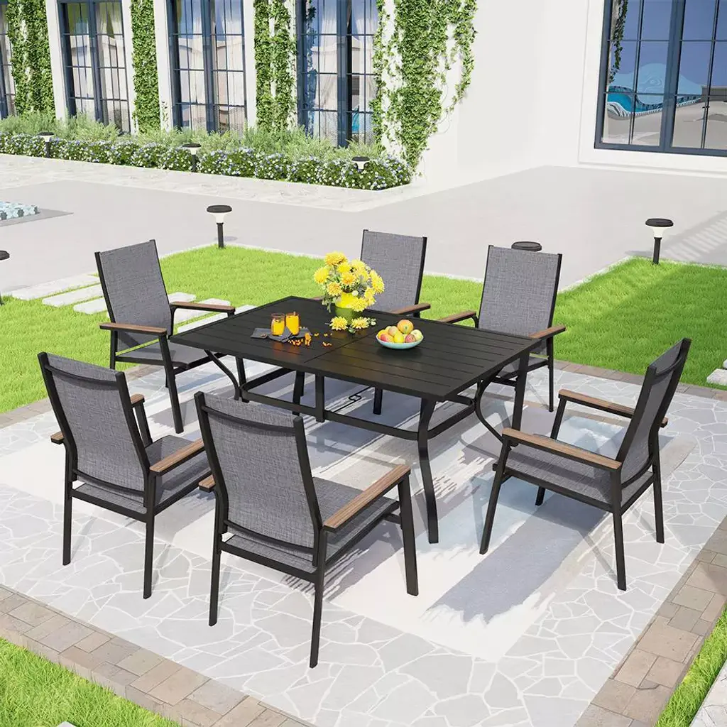 Crestlive Products 6 Person Aluminum Outdoor Dining Set Rectangular Expandable Dining Table With Chairs Waterproof Rust-proof All Weather Gray