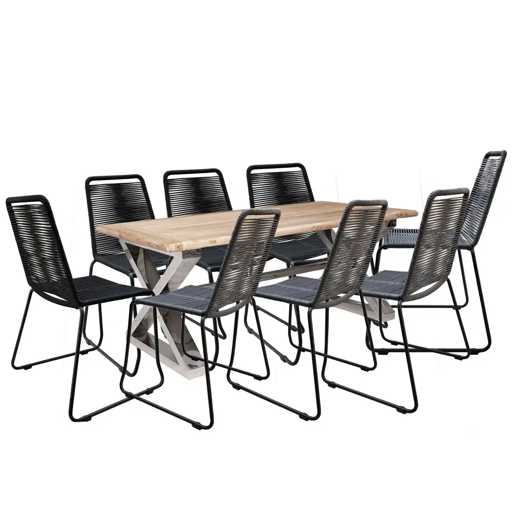 Crestlive Products 9Pc Patio Expandable Dining Set Aluminum Outdoor Rectangular Table For 6 To 8 With Chairs Gray