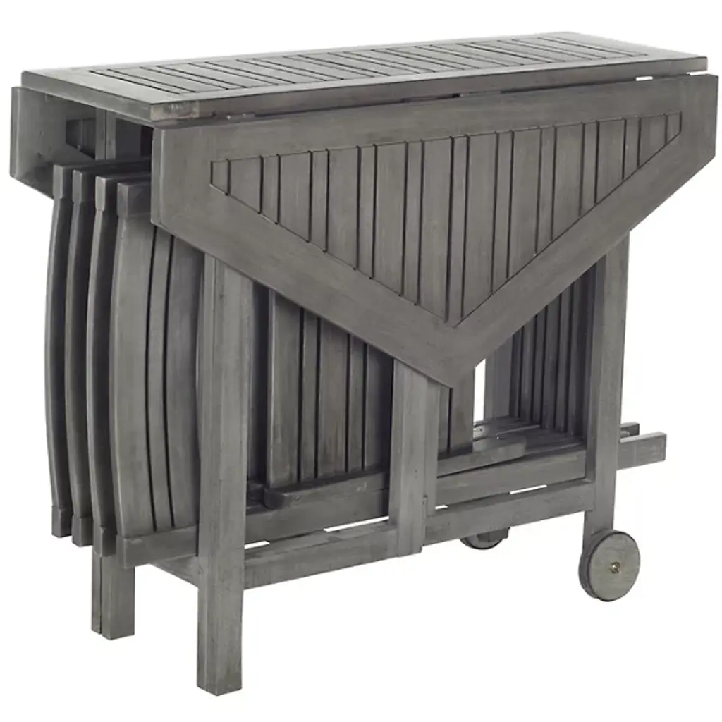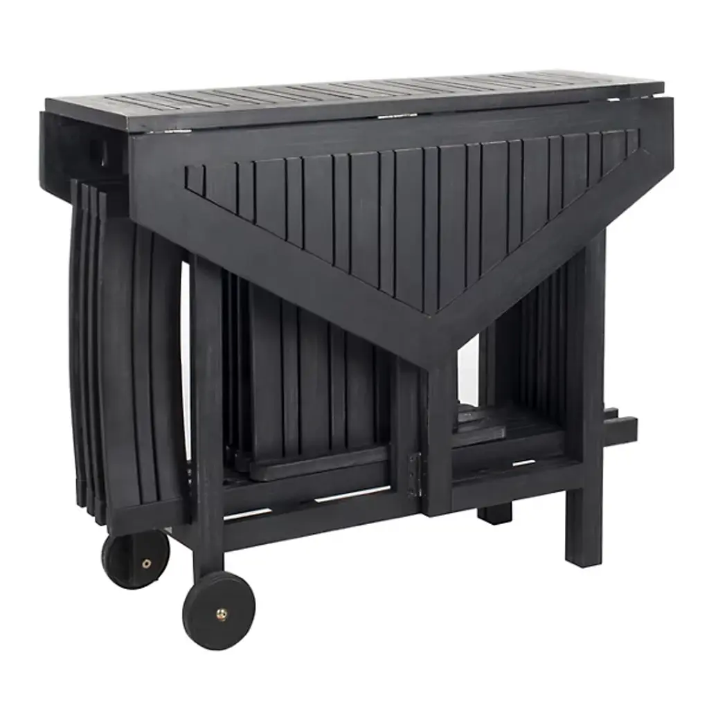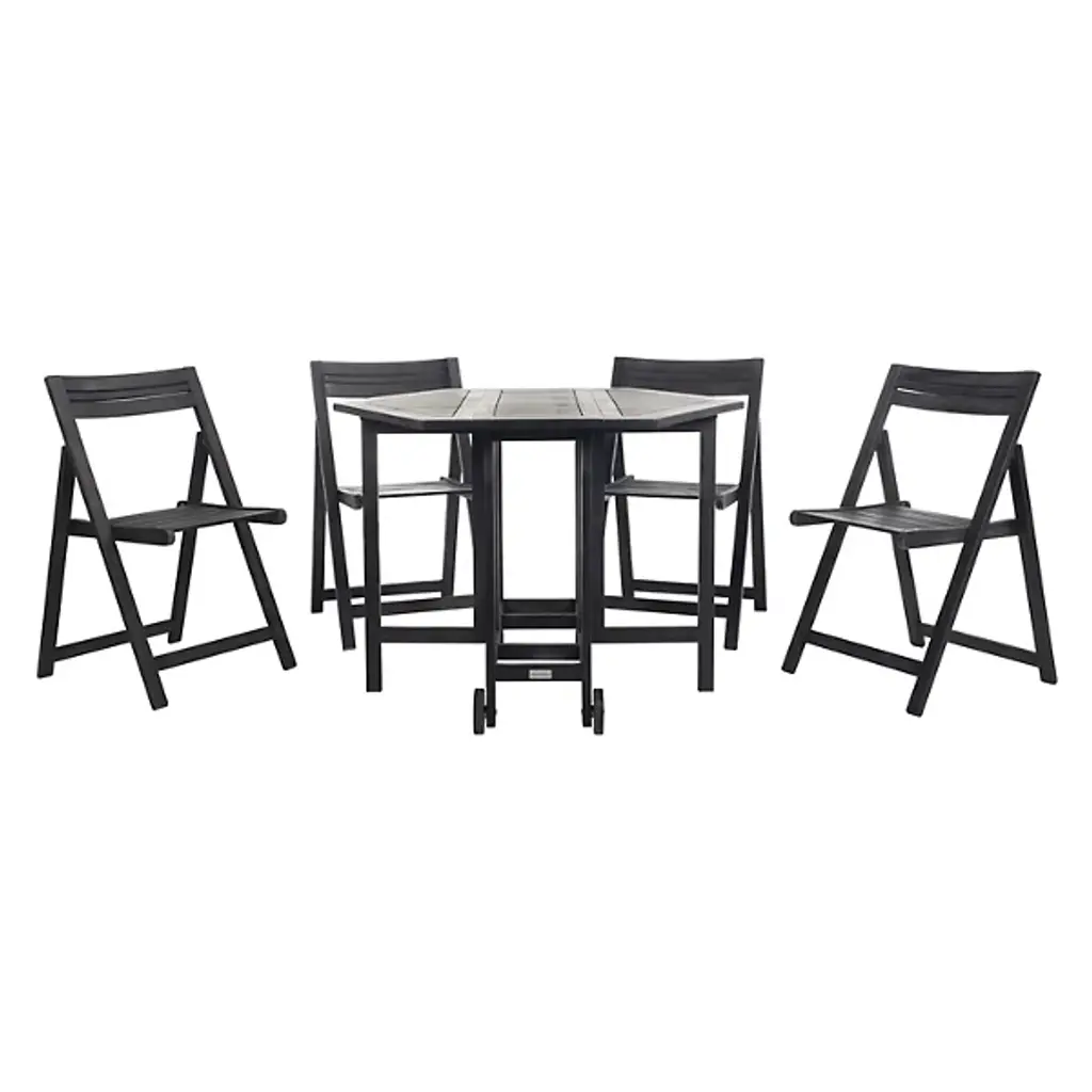 The Culebra Outdoor 5-Piece Dining Set from Alder & Ore maximizes outdoor living with a smart space-saving design. The four director-style chairs fold compactly beneath the foldable hexagonal table, making storage simple when not in use. Acacia wood construction delivers reliable performance in outdoor conditions while maintaining its natural appeal. The chairs' angled backs and arms provide optimal comfort for extended dining experiences. This set transitions smoothly from intimate family dinners to casual brunches with friends, offering practical flexibility for any outdoor meal.