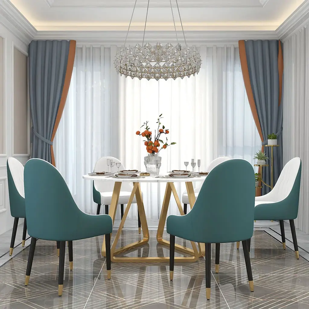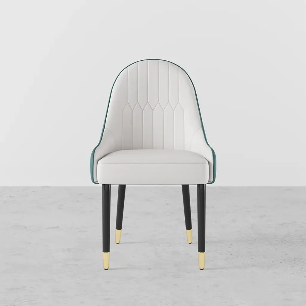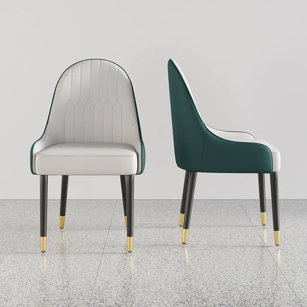This set of two modern PU leather dining chairs features a white-gray finish and metal legs. The chairs are designed with an ergonomic structure to provide comfort during meals. Their contemporary style and durable construction make them a suitable addition to any dining room.