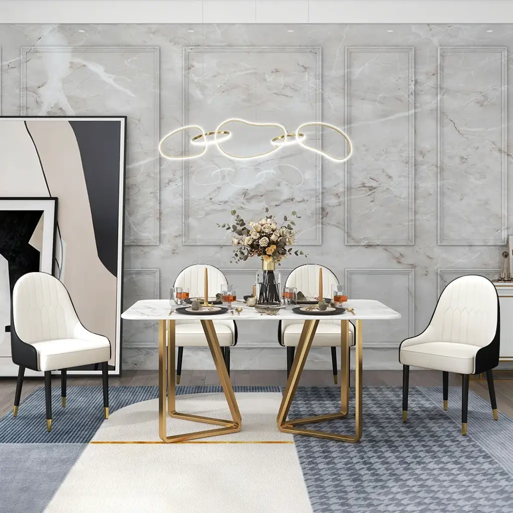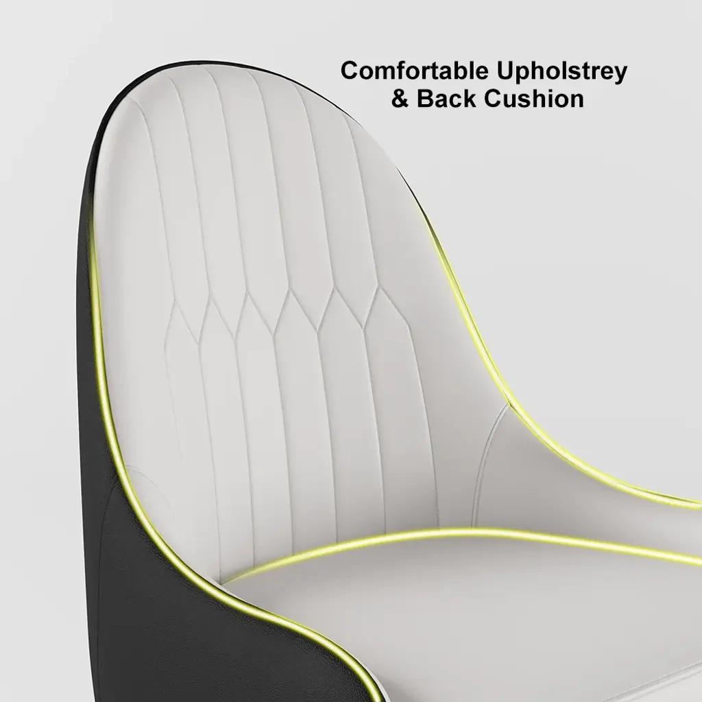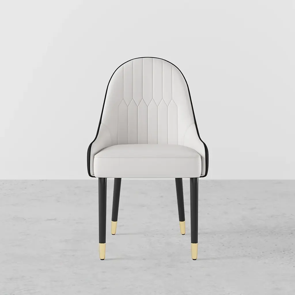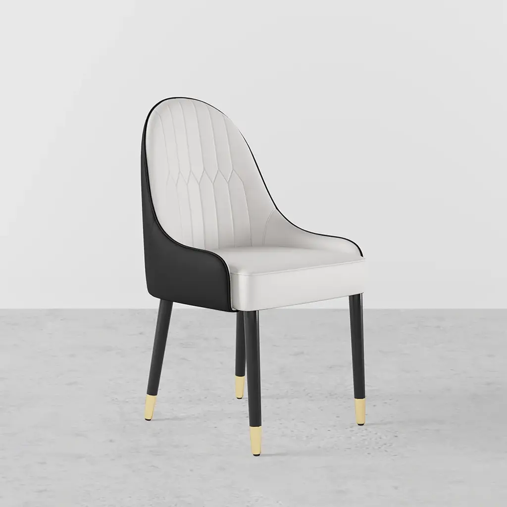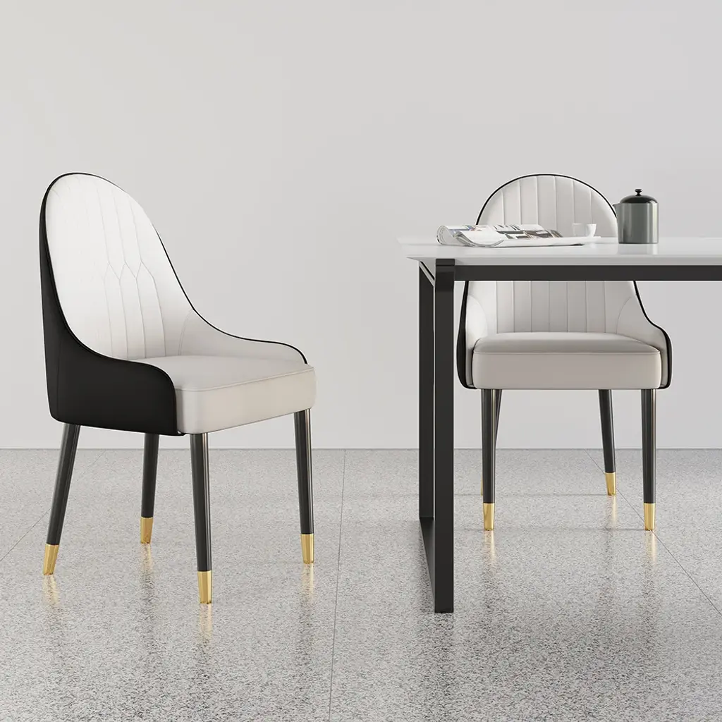 This set of two modern PU leather dining chairs features a white-gray finish and metal legs. The chairs are designed with an ergonomic structure to provide comfort during meals. Their contemporary style and durable construction make them a suitable addition to any dining room.