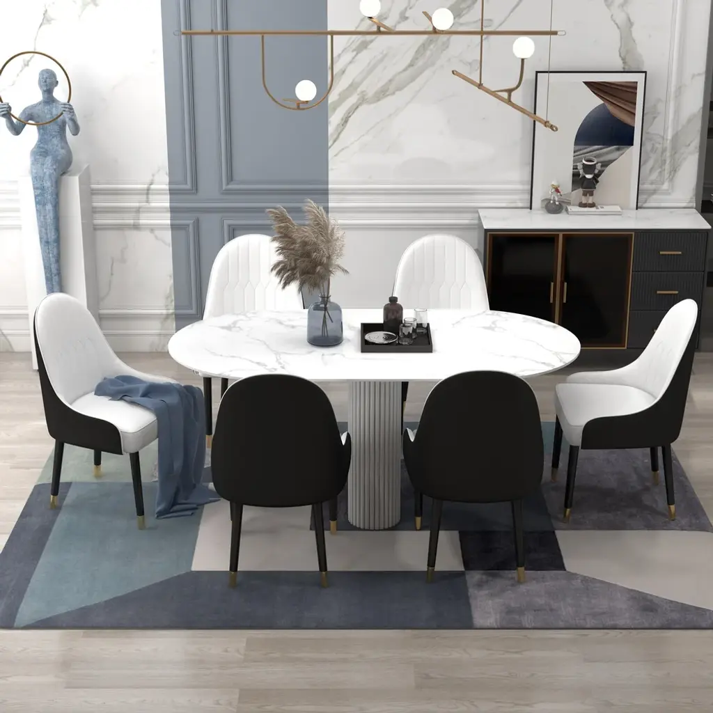 Darg Series Set Of 8 Modern Pu Leather Dining Chairs White & Black