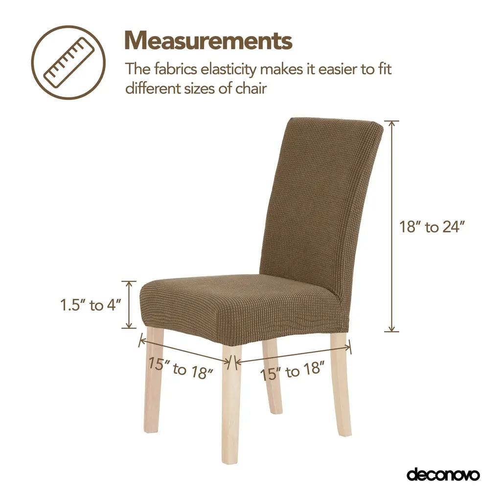 Protect your dining chairs with style using the Deconovo Elastic Spill Proof Parson Chair Slipcovers. This set of 4 slipcovers is designed with high-quality, imported stretchy jacquard fabric (85% polyester, 15% spandex) that fits most chairs perfectly, providing an easy and secure installation. Key Features: Whether you're looking to refresh your home's look or protect your furniture from everyday wear, Deconovo slipcovers offer both beauty and practicality. Ideal for dining rooms, weddings, parties, or professional settings, these slipcovers bring a touch of modern luxury to any space.