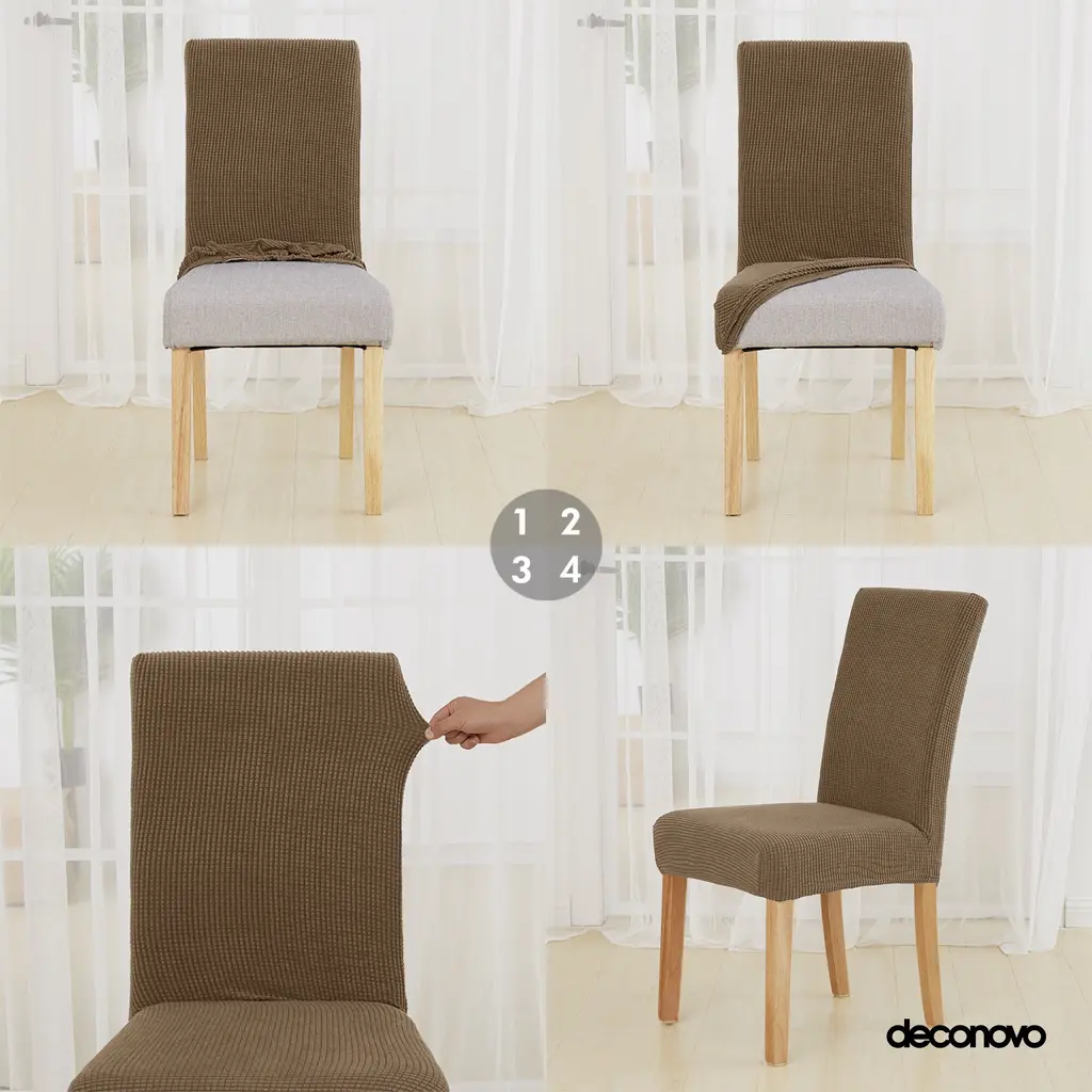 Deconovo Elastic Spill Proof Chair Slipcovers Set Of 4 For Dining Chairs - Light Brown