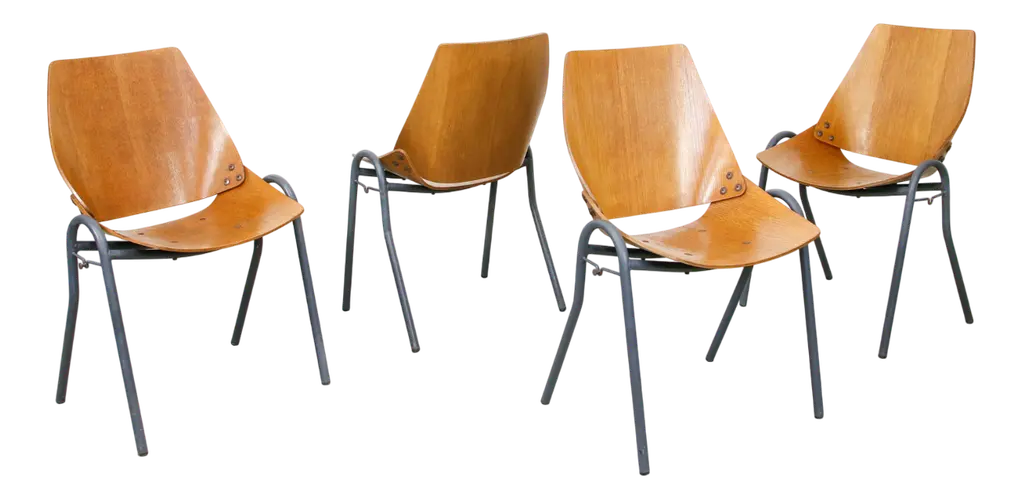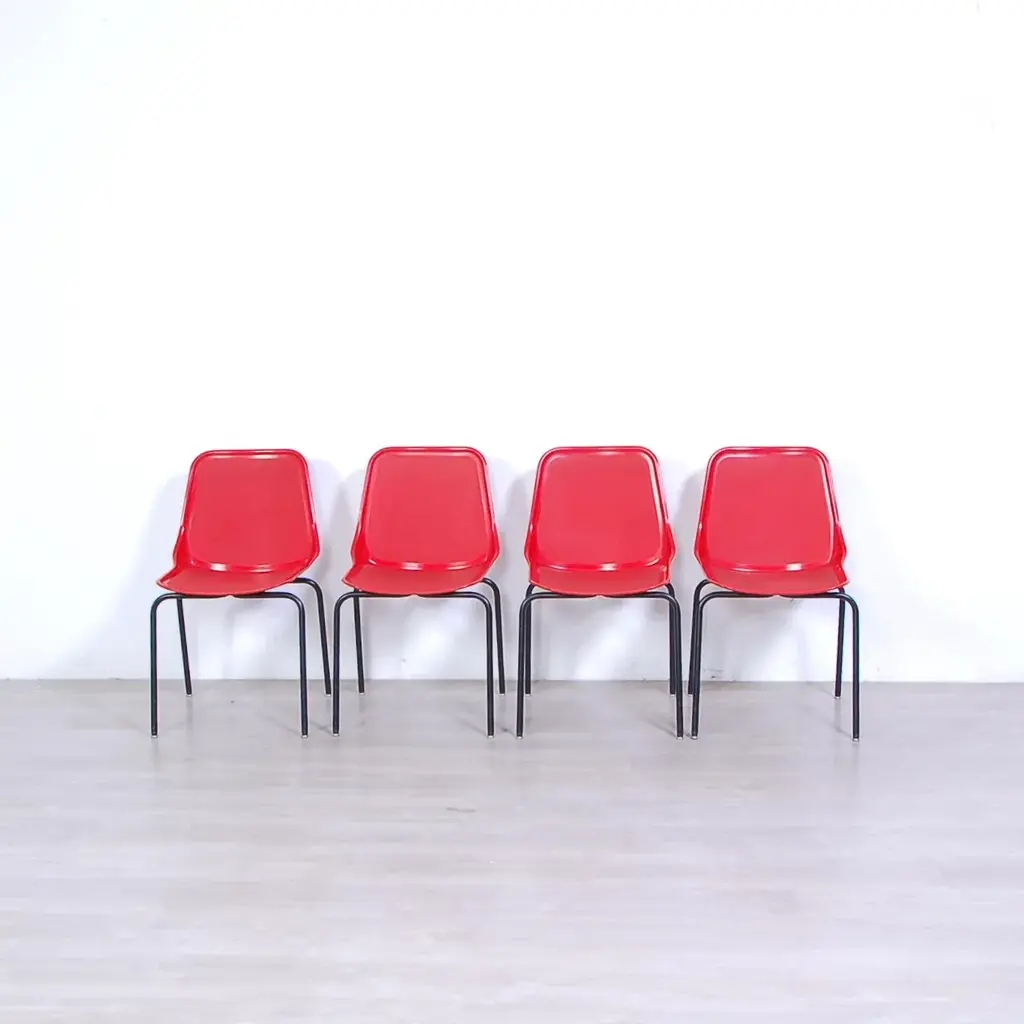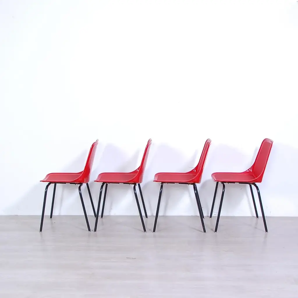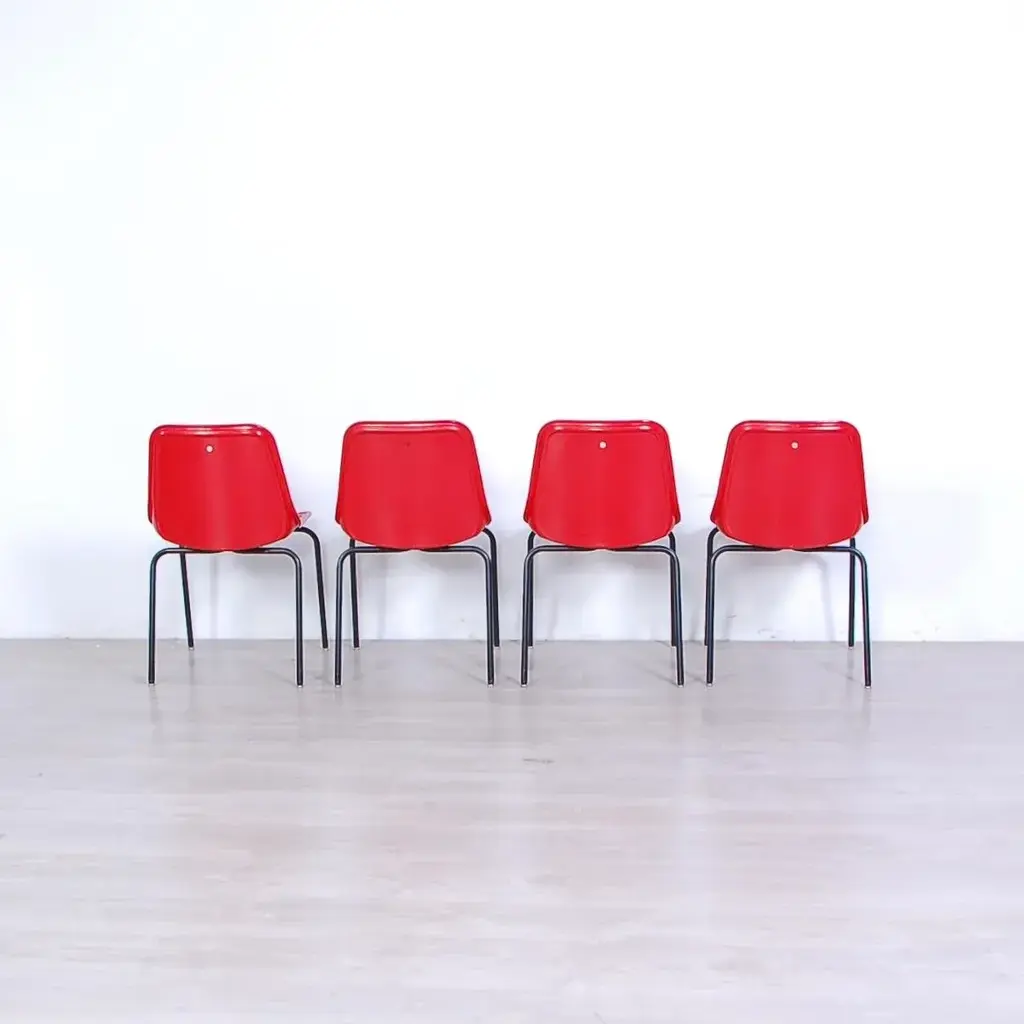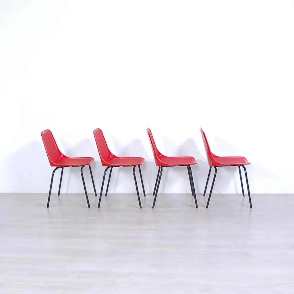 Beautiful set consisting of four mim rome production chairs in the 1960s. Brand on the back of the back and on the bottom of the session. This piece has an attribution mark, I am sure that it is completely authentic and take full responsibility for any authenticity issues arising from misattribution
