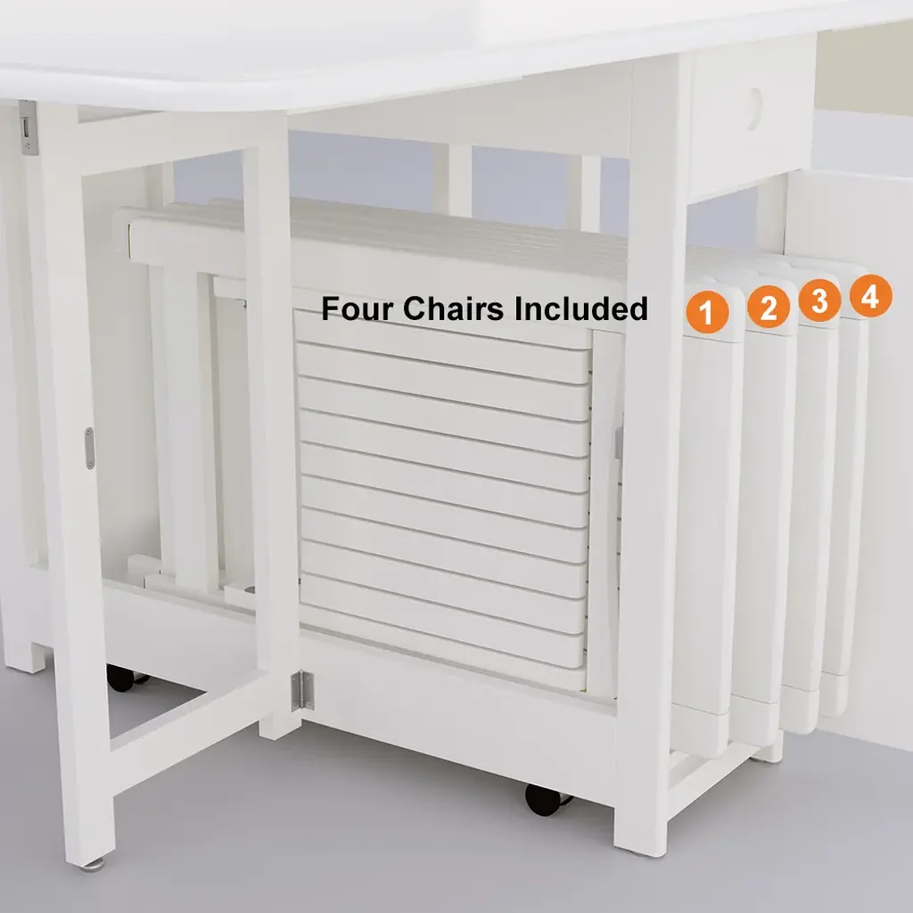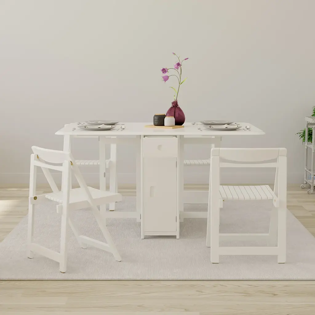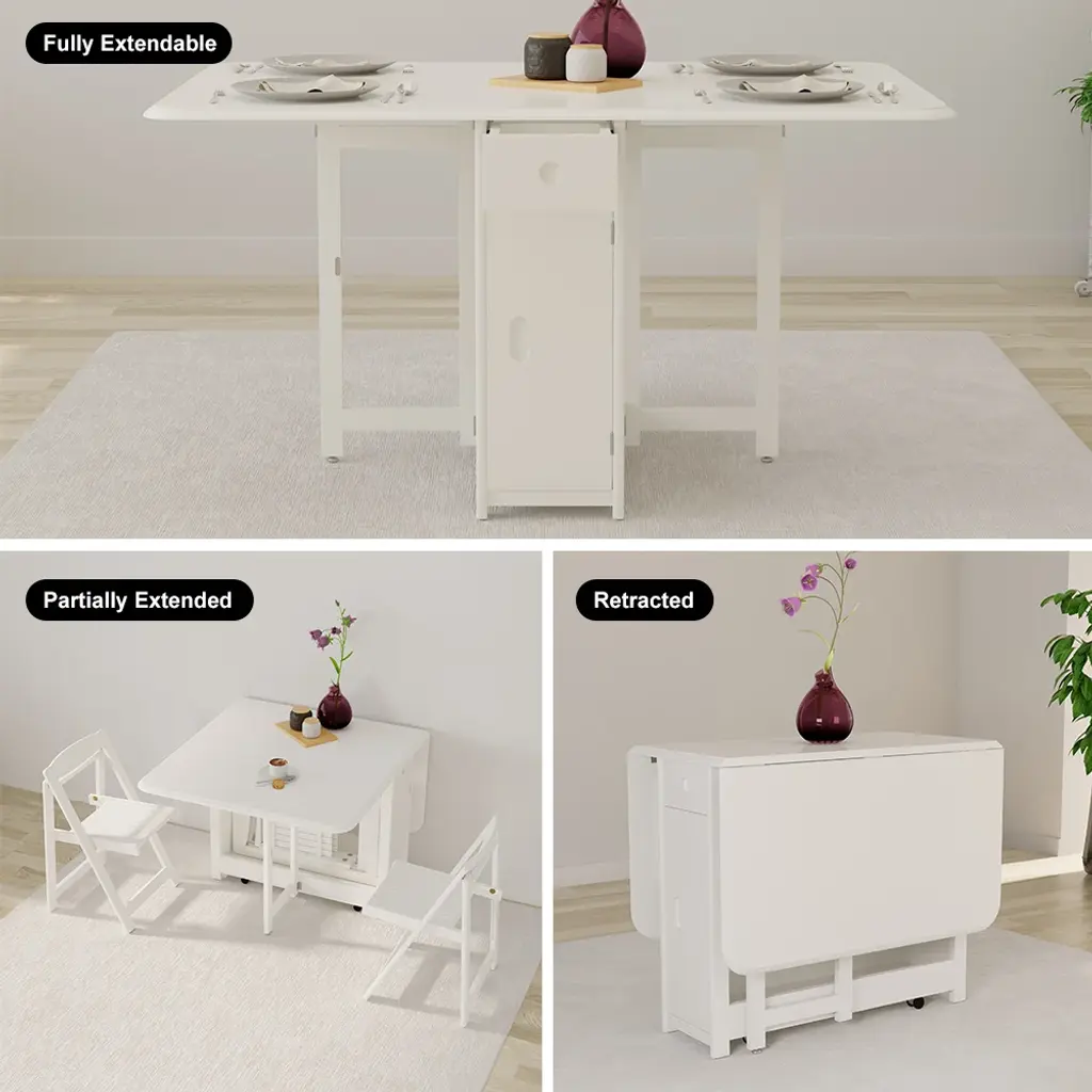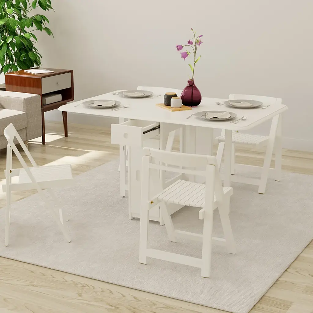 Dining Set 18"-57" Modern Solid Wood Folding Dining Table White With 4 Chairs