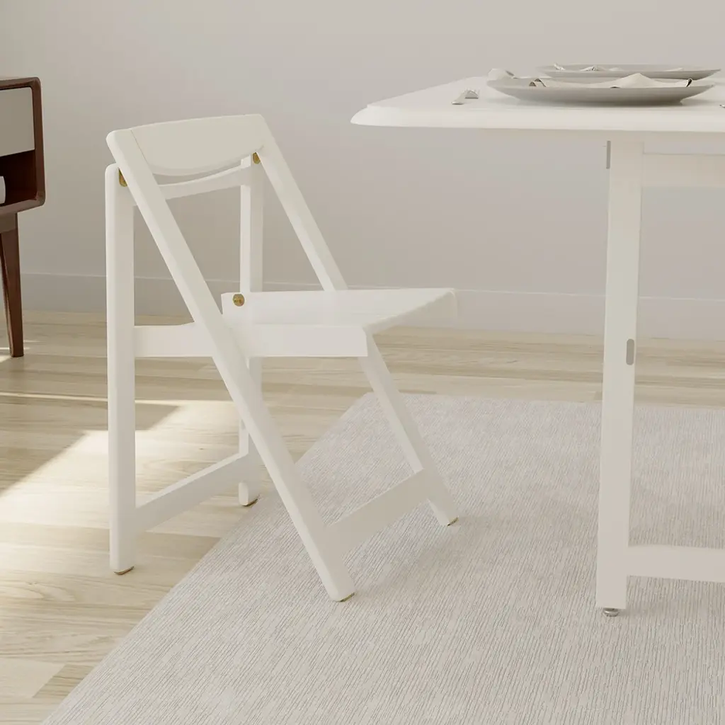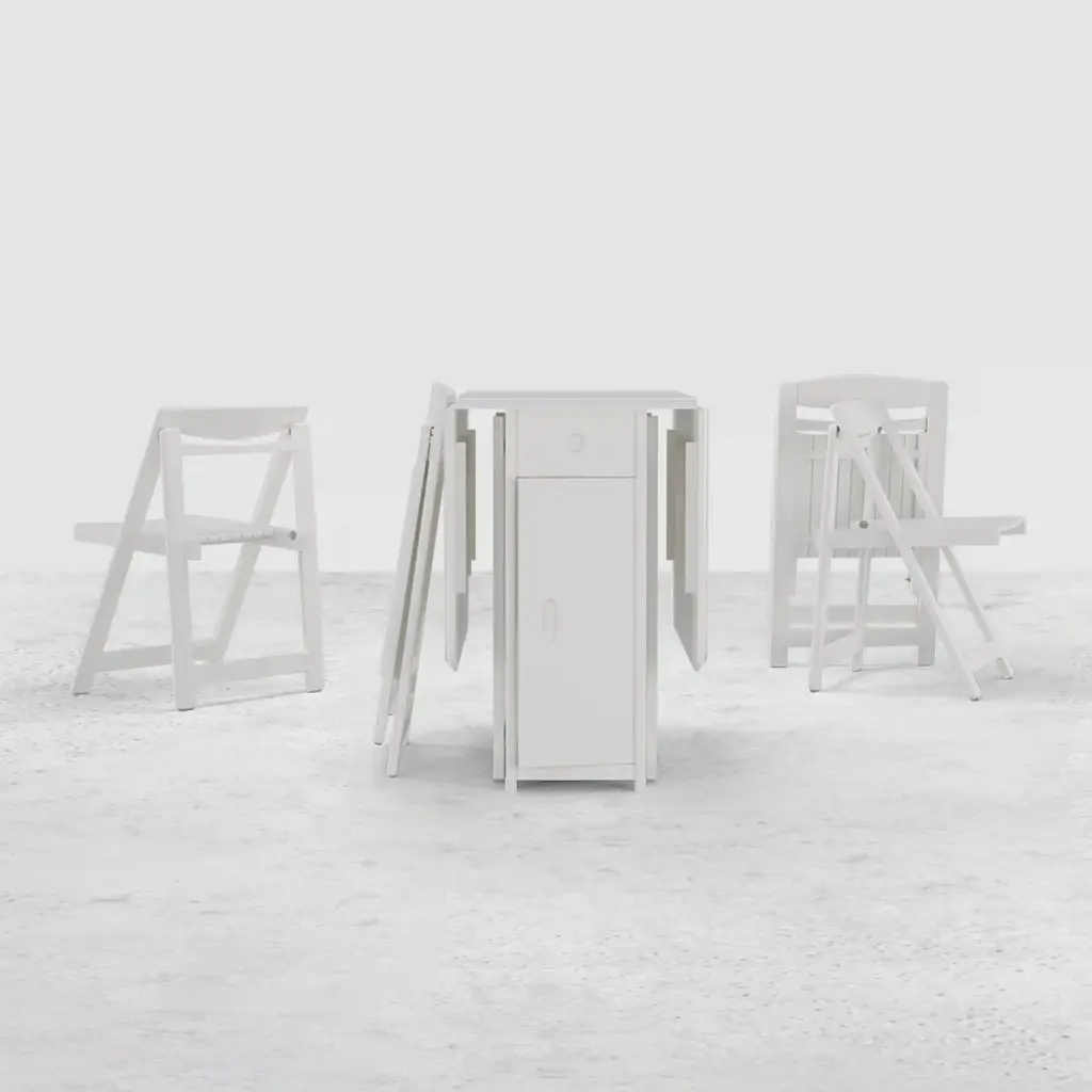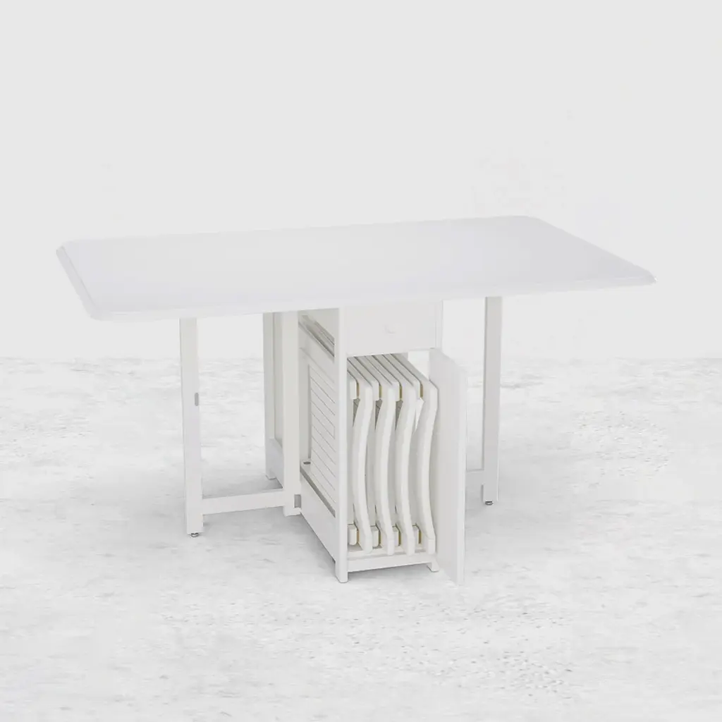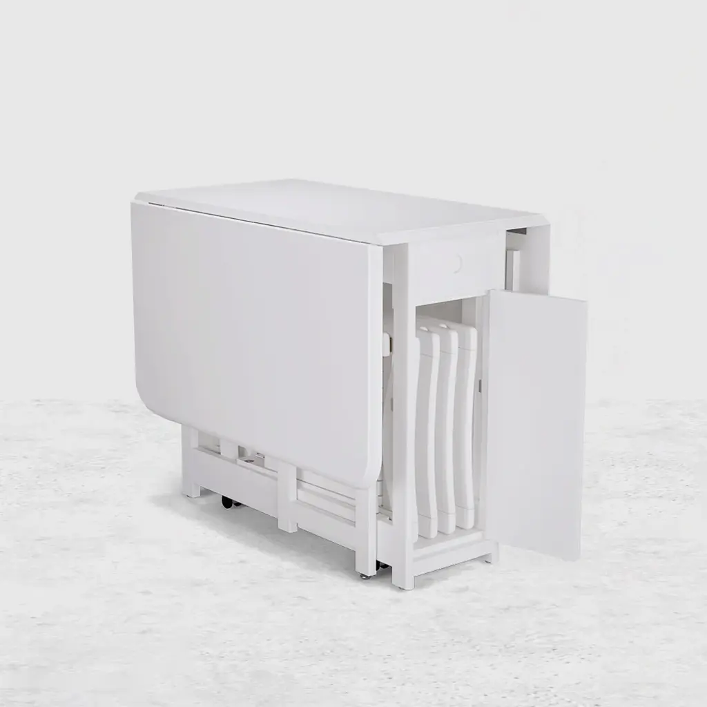 Dining Set 18"-57" Modern Solid Wood Folding Dining Table White With 4 Chairs