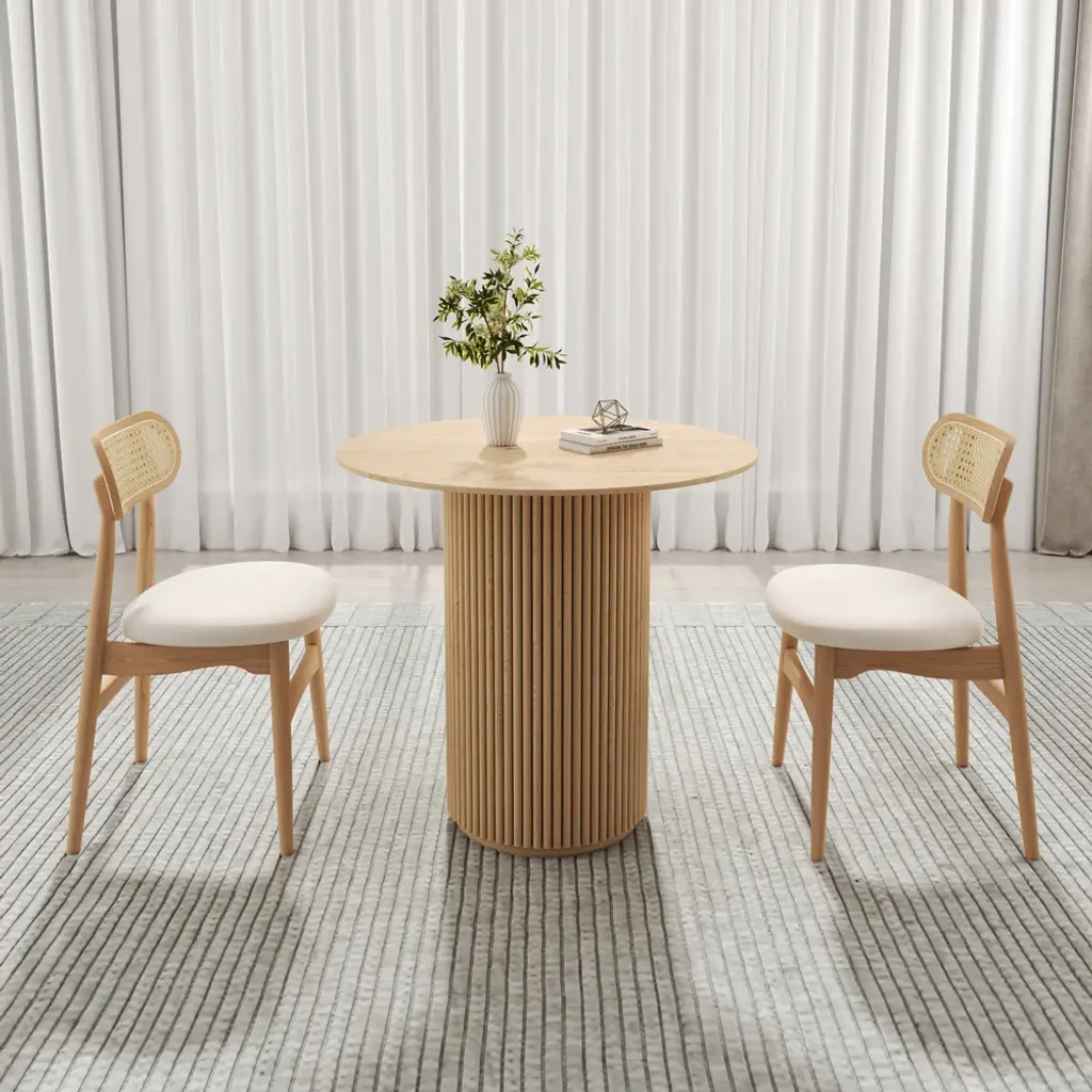 Dining Set 31.5" Round Dining Table Natural With 2 Chairs