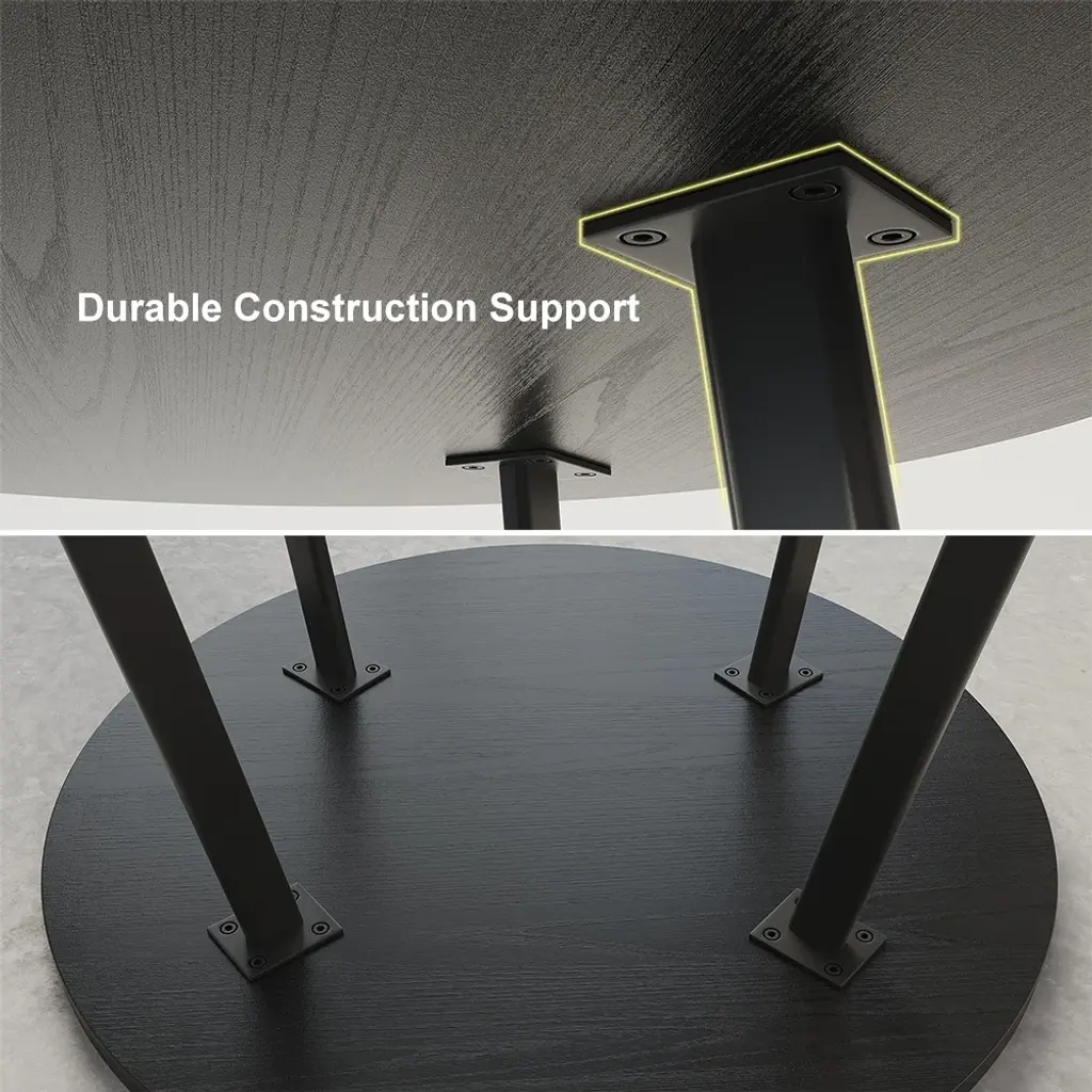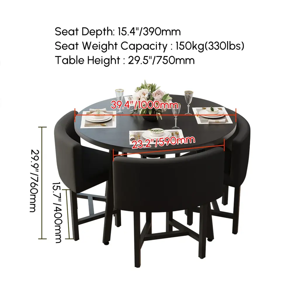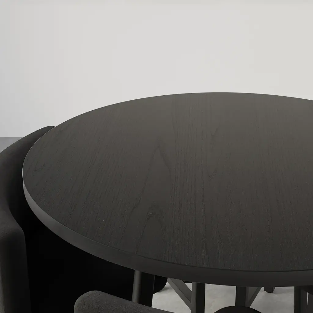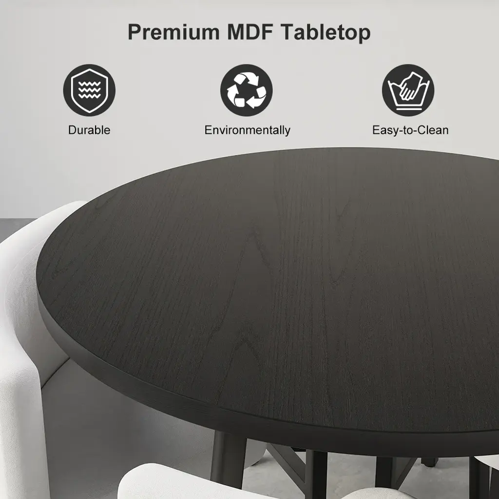 Dining Set 39.4" Modern Round Wood Dining Table Black With 4 Black Chairs