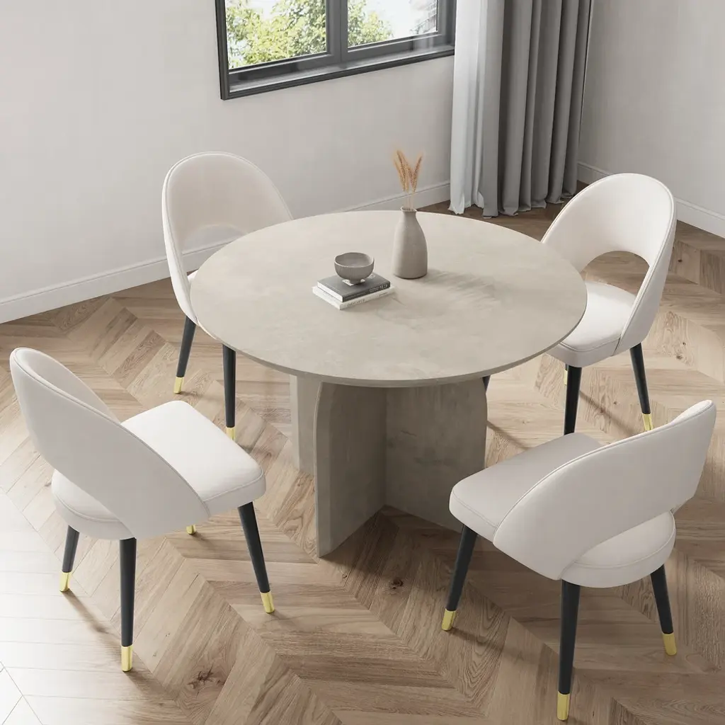Dining Set 39.4" Modern Round Wood Dining Table Gray With 4 Chairs