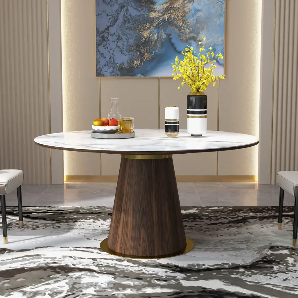 Dining Set 47.2" Round Sintered Stone Dining Table With 6 Chairs