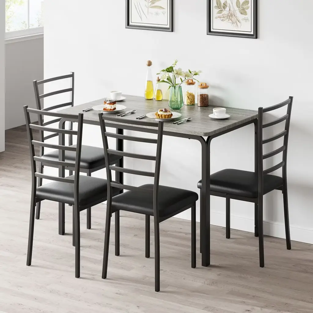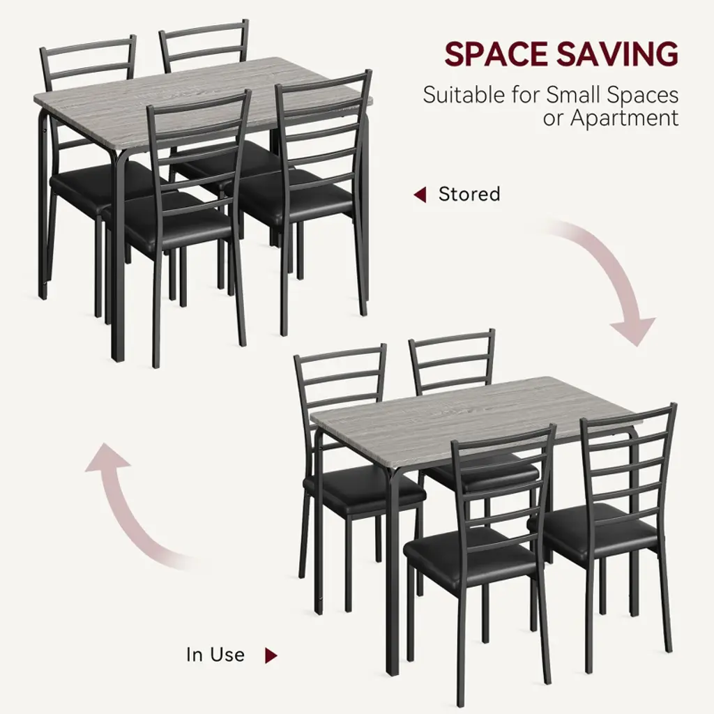Dining Table Set For 4, Kitchen Table With 4 Chairs Dining Table Set For Kitchen & Dining Room, Compact Dining Set For Small Spaces, Grey
