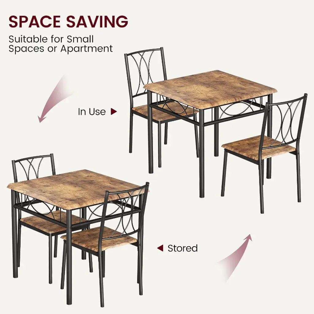 Dining Table Set For Small Spaces, 3 Pcs Space Saving Kitchen Table With 2 Chairs, Wooden Dinner Table Chair Set With Metal Frame, Bistro Table Set