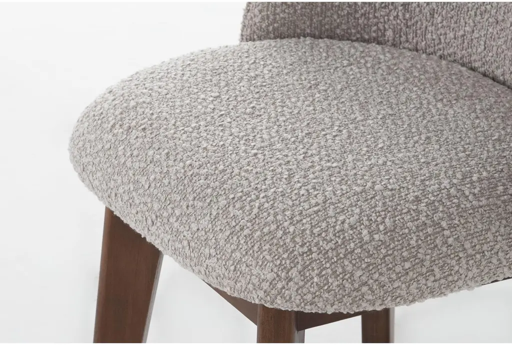 Draper Walnut Mid-Century Modern Curved Back Grey Boucle Dining Chair Set Of 6 | Acacia | Armless