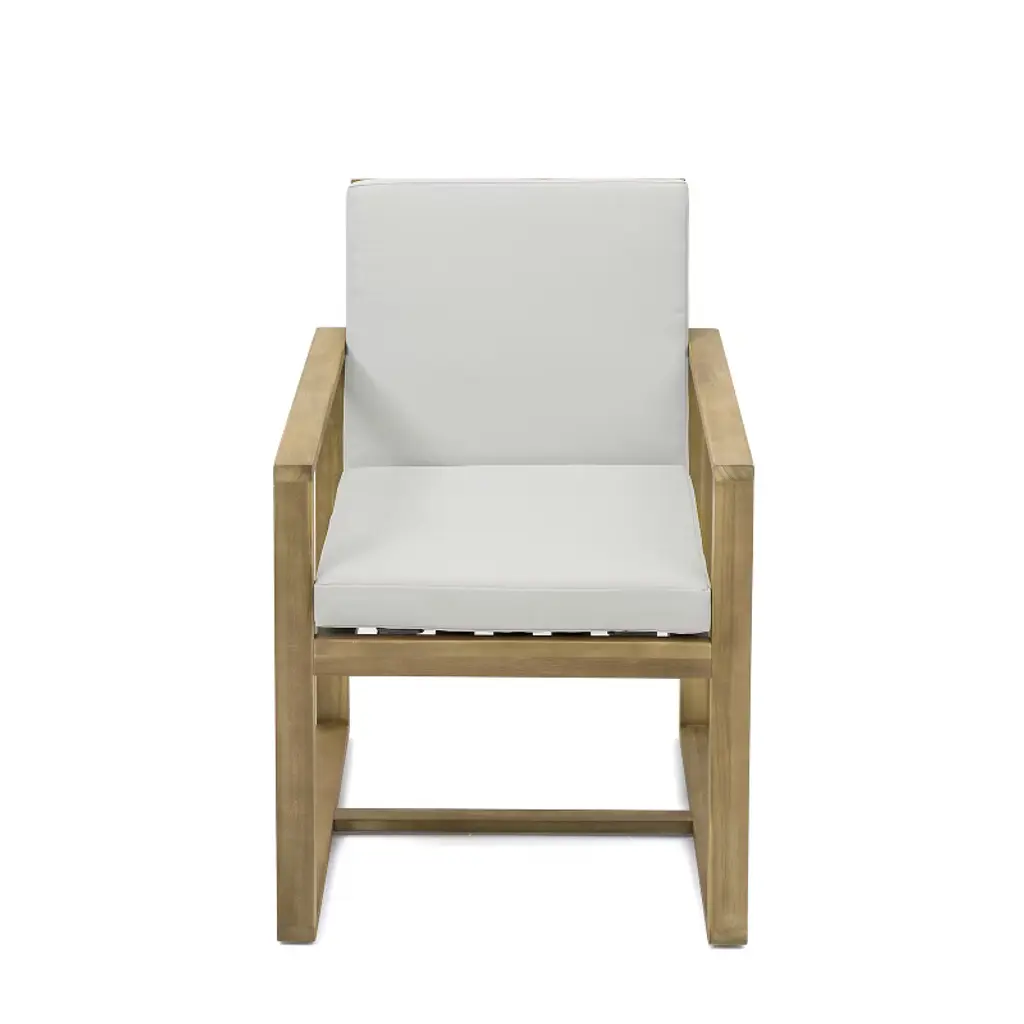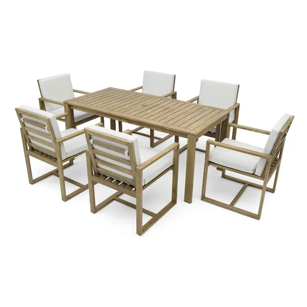Eljget 7 Piece Outdoor Dining Set For 6, Acacia Wood Table And Chairs With Soft Cushion For Patio Balcony And Backyard, Light Teak