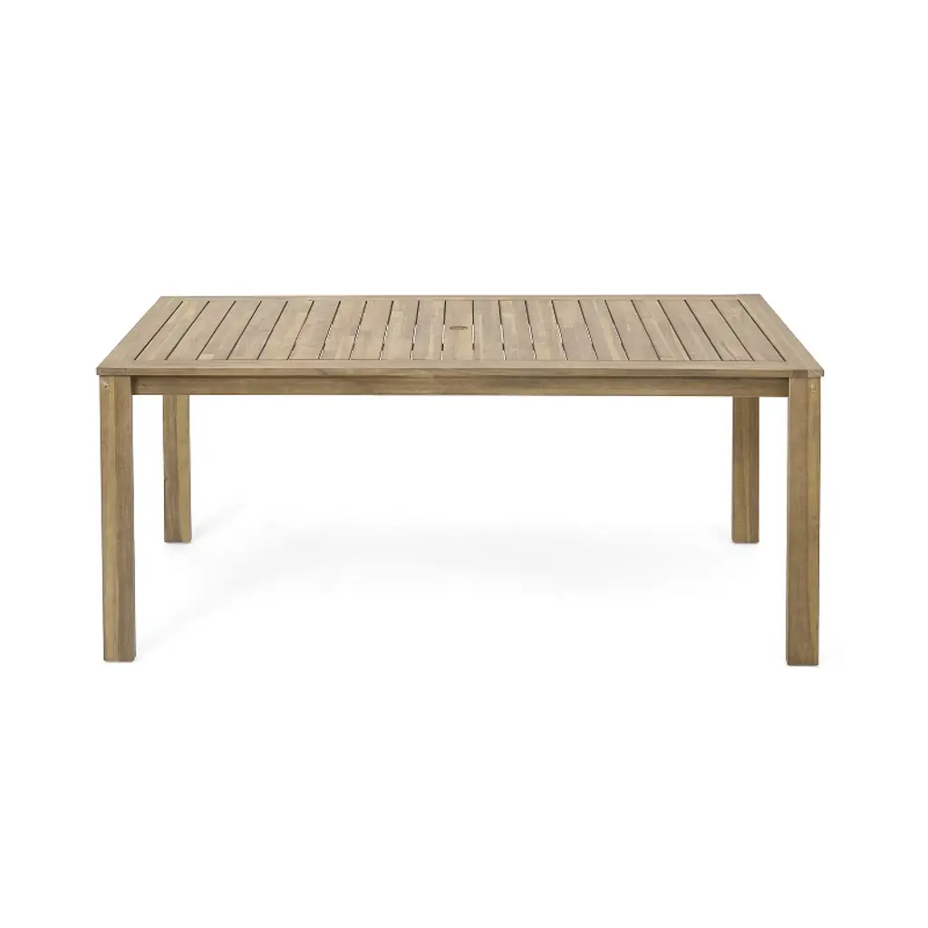 Experience outdoor dining like never before with the Acacia Wood Outdoor Dining Table and Chairs set. Perfect for entertaining family and friends in your backyard or patio, this set offers a comfortable and stylish dining experience for up to 6 people. The premium acacia wood construction makes this set waterproof, rust-proof, and UV-proof to protect it from the elements and keep it looking great for years to come. The outdoor dining table is designed with a hole, making it compatible with most umbrellas, a feature that ensures you can enjoy outdoor dining without the harsh sun or light drizzles bothering you (Note: this outdoor dining set does not include the umbrella.).