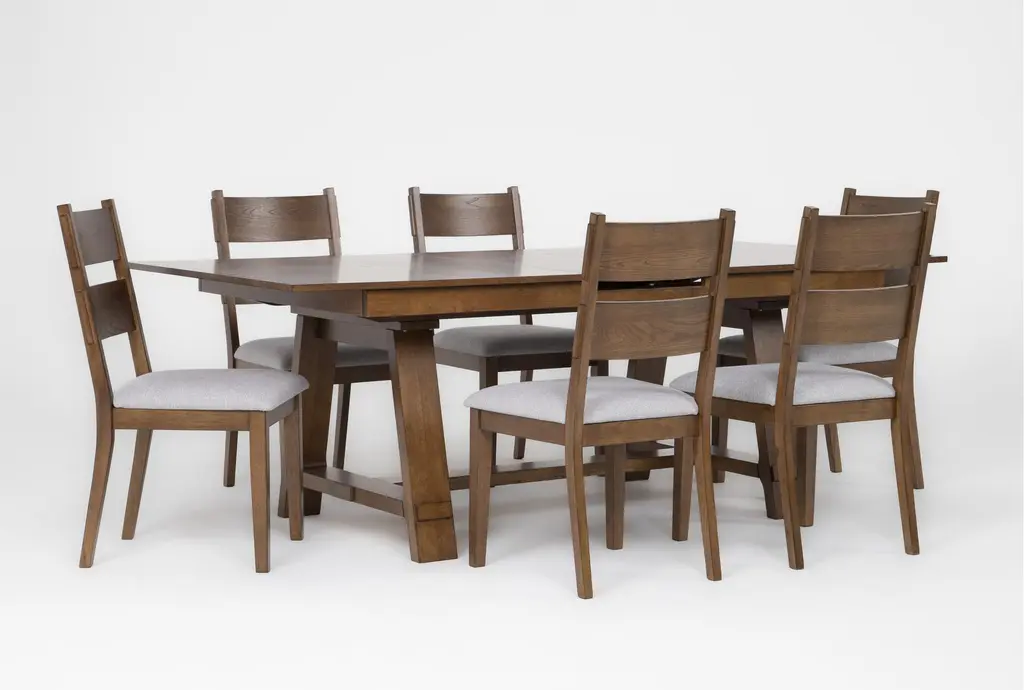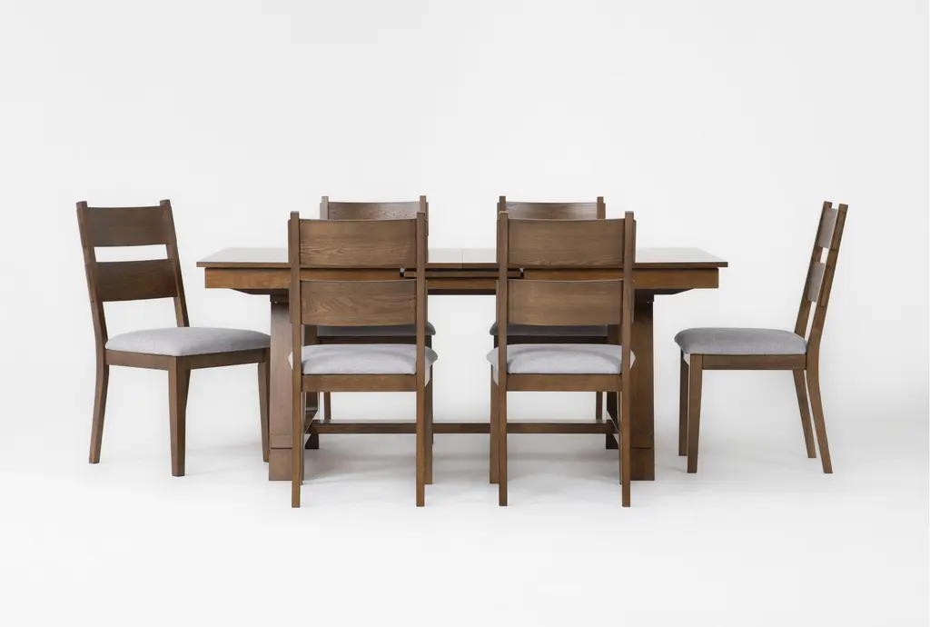 Ellory Brown Wood 71-87" Extendable Dining Set For 6