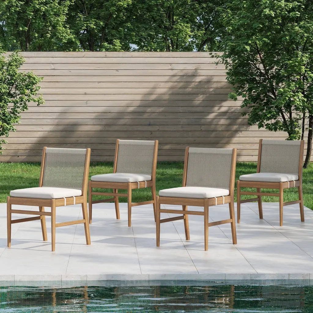 Ellory Brown Wood + Grey Upholstered Dining Chair Set Of 4