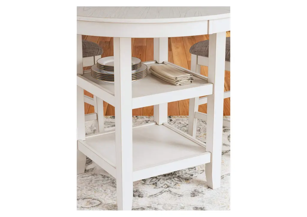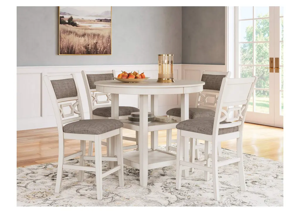 Come together for a delightful dining experience. Chic and relaxed, the Erinberg counter height dining table and bar stool set effortlessly captivates with its elegant simplicity. The timeless design pairs a crisp white hue with gray textured upholstery. It's a fresh addition everyone will notice. Weight 149.000 lbs. (67.05kgs.)
