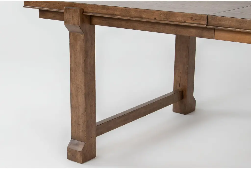 Enhance your dining experience with the Estate Brown 80"-104" Extendable Dining Set. This traditional set includes a bench and wood side chairs, perfect for seating up to six people comfortably. The estate oak finish and velvet upholstery add a touch of sophistication to your dining room or kitchen.