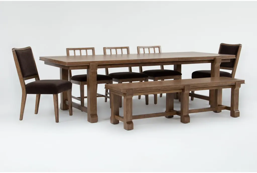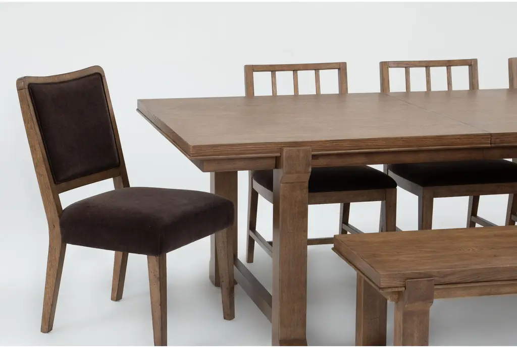 Estate Brown 80"-104" Extendable Dining W Bench Uph + Wood Side Chair Set For 6 By Nate Berkus + Jeremiah Brent | Rectangular