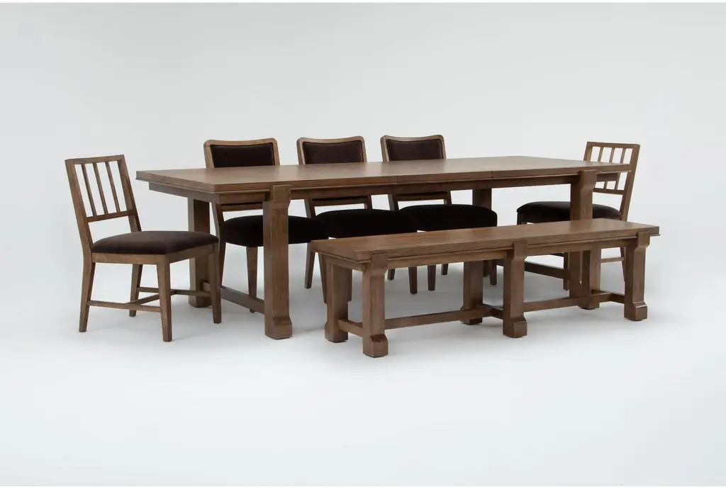 Estate Brown 80"-104" Extendable Dining W Bench Wood + Uph Side Chair Set For 8 By Nate Berkus + Jeremiah Brent | Rectangular