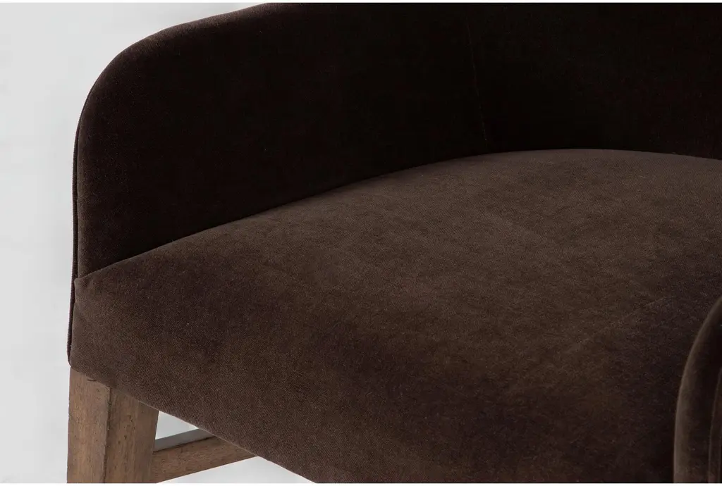 Enhance your dining space with the Estate Brown Wood Dining Upholstered Arm Chair Set of 6 by Nate Berkus + Jeremiah Brent. These chairs combine the traditional appeal of brown rubberwood with the comfort of velvet upholstery, creating an inviting atmosphere for any meal. Perfect for your dining room or kitchen, this set of 6 chairs offers both style and functionality.