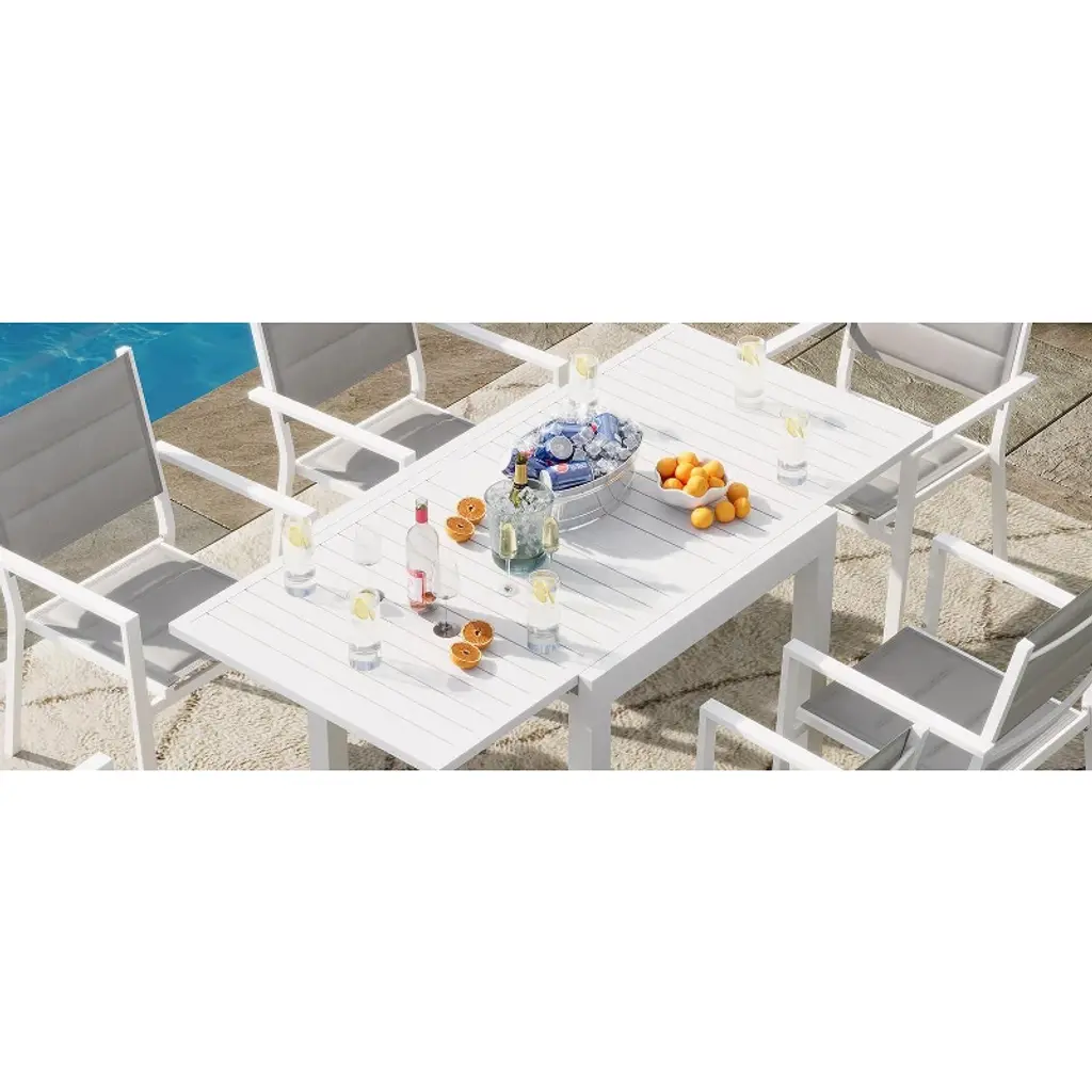 Expandable Patio Table For 4-6 Persons, Extentable Outdoor Dining Table Set 31.5¡±-63¡±, Aluminum Slat Frame, Rectangular