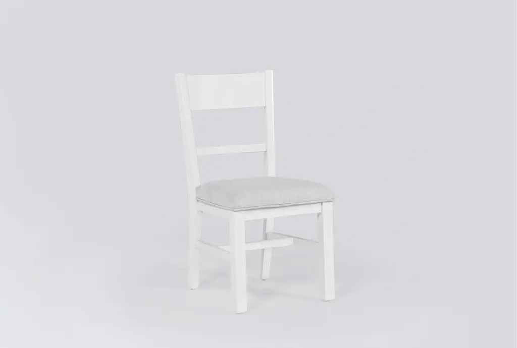 Designed with a sense of ease and simplicity, our Felipe upholstered wood back dining chair is a seamless addition to your space. Sturdy construction is enlightened by the white finish, clean lines and farmhouse characteristics. You'll love the casual charm and welcome function this piece brings.