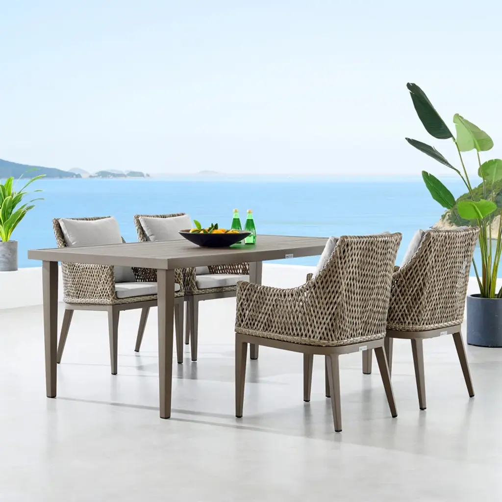 Galilea 5 Piece Gray Aluminum Outdoor Dining Set With Gray Fabric
