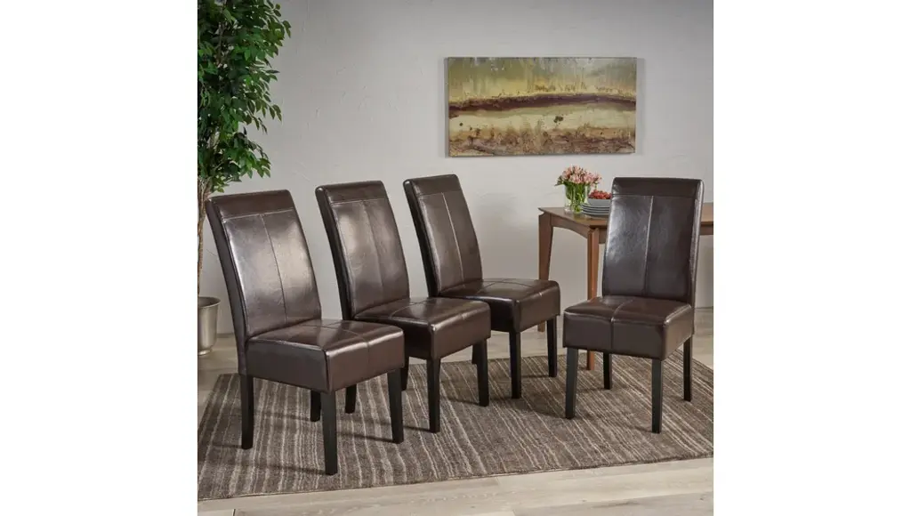 Gdf Studio Percival T-Stitched Chocolate Brown Leather Dining Chairs, Brown, Set Of 4