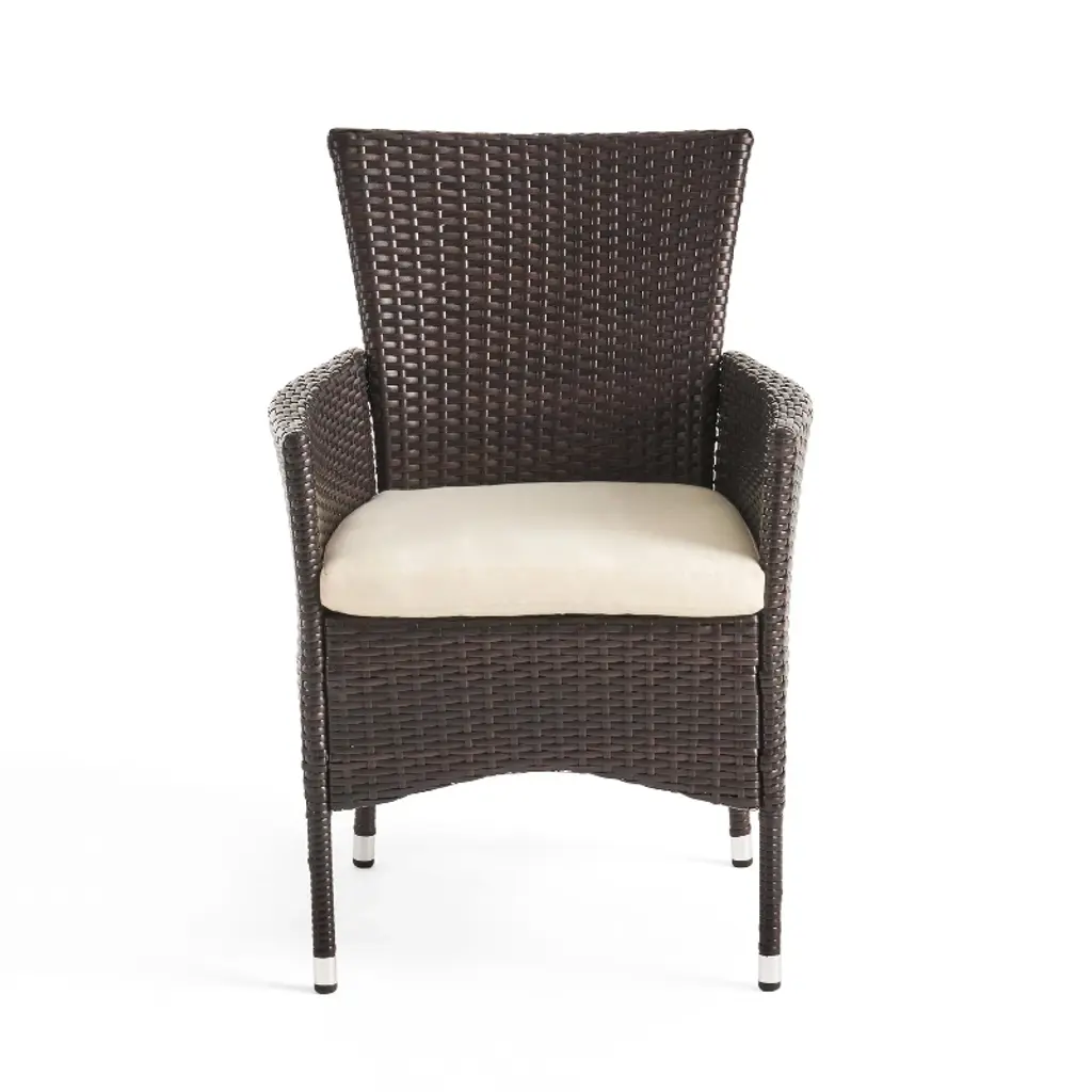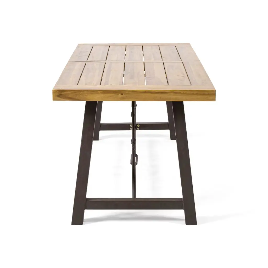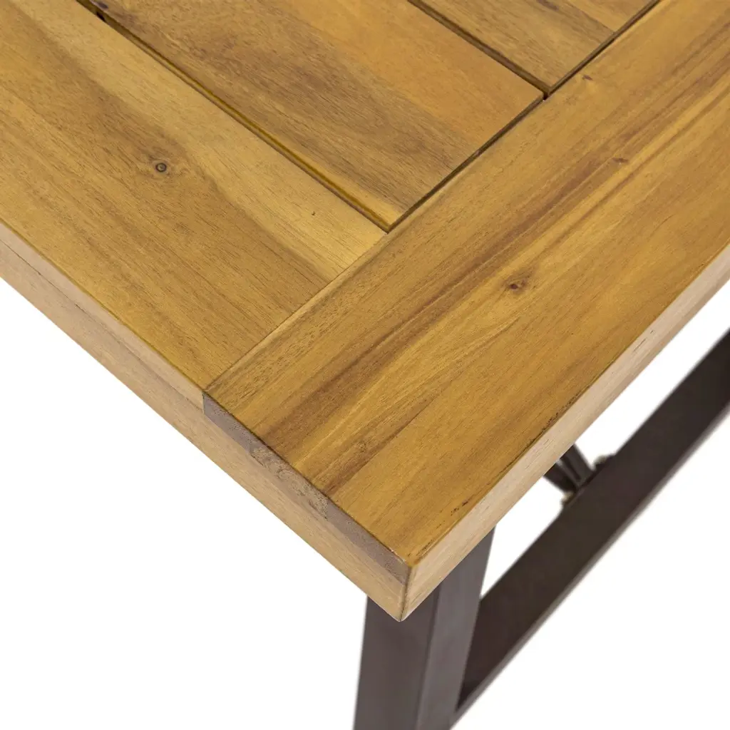 Introducing our elegantly designed dining set, crafted to enhance your outdoor space. Made with a perfect blend of wood, iron, and wicker, this set effortlessly combines functionality and style. With a spacious table, bench, and four wicker dining chairs, it comfortably accommodates six people. Its timeless design complements any patio decor, making outdoor dining stylish and comfortable for your gatherings. Table and Bench Material: Acacia Wood Chair Material: Faux Rattan Frame Material: Iron Cushion Material: Water Resistant Fabric Table and Bench Finish: Teak Table and Bench Frame Finish: Rustic Metal Chair Finish: Multibrown Cushion Color: Beige Assembly Required All Dimensions Exclude Cushion Measurements Table Dimensions: 33.00 inches deep x 70.00 inches wide x 29.50 inches high Table Weight Capacity: 300 lbs Chair Dimensions: 24.00 inches deep x 23.25 inches wide x 33.00 inches high Seat Dimensions: 17.50 inches deep x 18.00 inches wide x 16.00 inches high Arm Height: 23.50 inches Seat Cushion Thickness: 2.25 inches Weight Capacity: 400 lbs