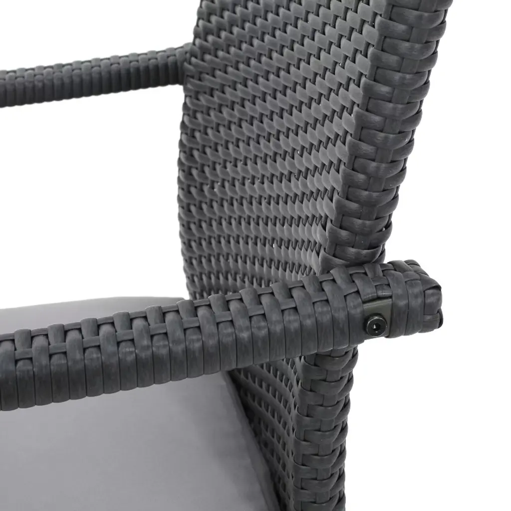 Your next dinner party is about to get an upgrade. With seating for four, our dining set can help you create the ideal outdoor lounge area. Featuring a slat panel tabletop and lovely wicker seating, this collection is bursting with timeless sophistication. This set offers cozy cushions and a round acacia wood table with a cross base, giving you a functional and cozy aesthetic to uplift any space. Table Material: Acacia Wood Chair Material: Faux Rattan Chair Frame Material: Iron Cushion Material: Water Resistant Fabric Multiple Color Options Assembly Required All Dimensions Exclude Cushion Measurements Table Dimensions: 46.50 inches deep x 46.50 inches wide x 30.25 inches high Table Weight Capacity: 300 lbs Chair Dimensions: 25.00 inches deep x 22.25 inches wide x 35.00 inches high Chair Seat Dimensions: 18.00 inches deep x 18.50 inches wide x 16.00 inches high Arm Height: 26.00 inches Seat Cushion Thickness: 2.75 inches Chair Weight Capacity: 400 lbs