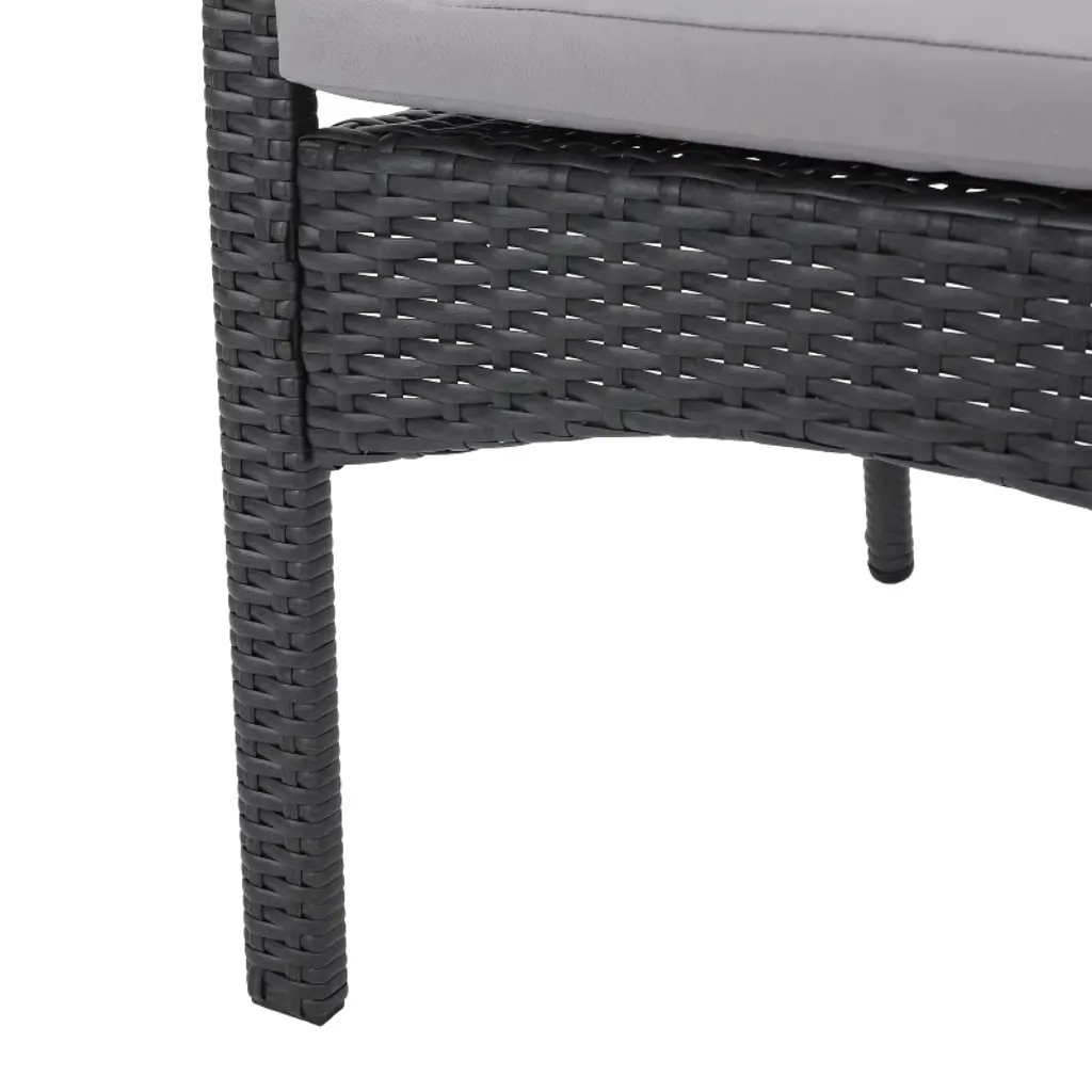 Gdfstudio Tara Outdoor Wicker And Acacia Wood 5 Piece Dining Set With Cushions, Gray