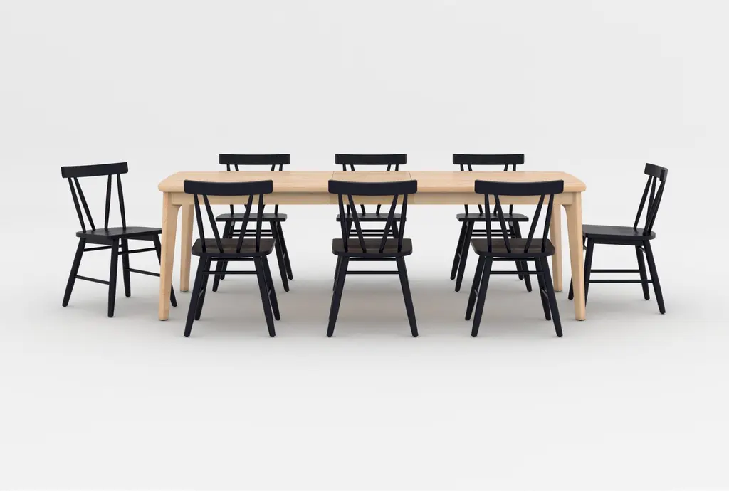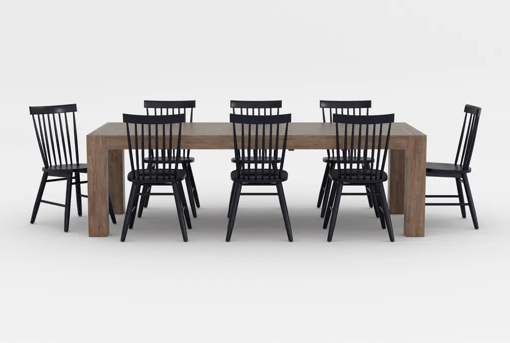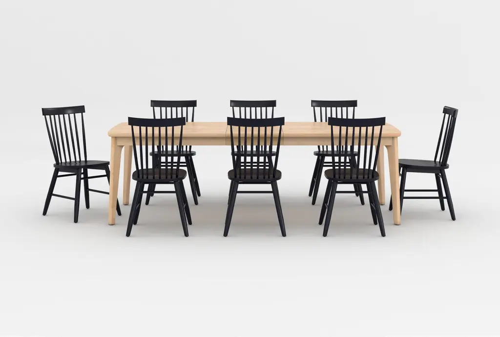 Georgiana Natural Rectangular 80" Dining With Renn Black Side Chairs Set For 8