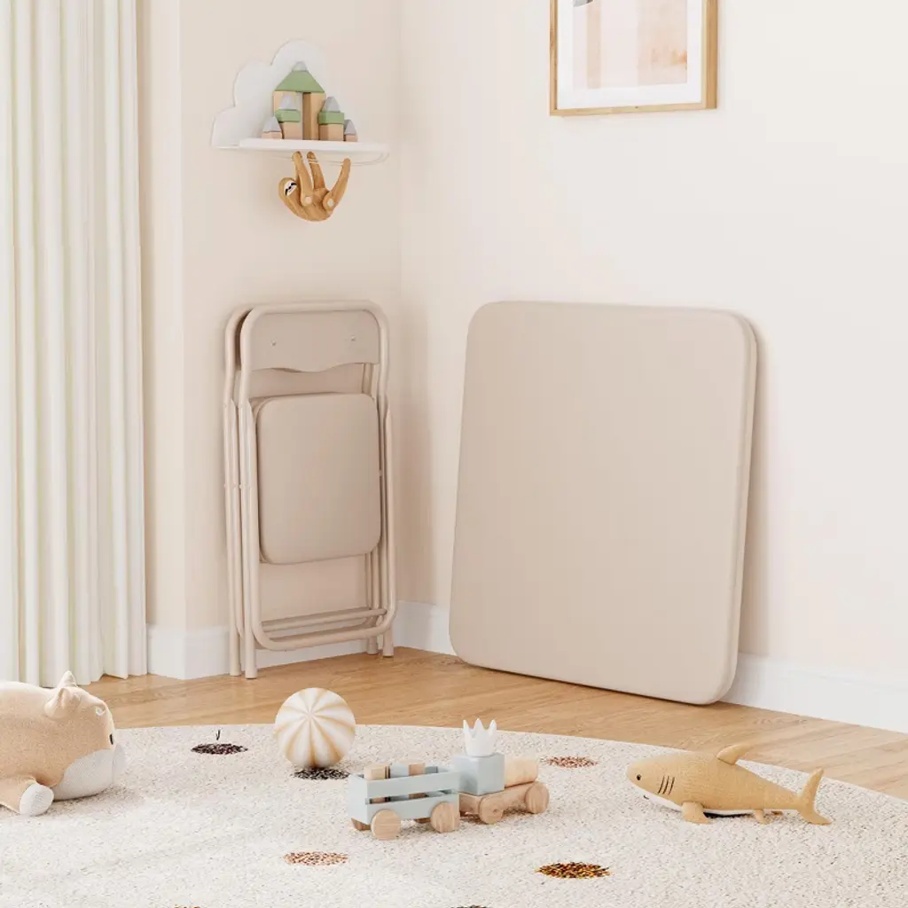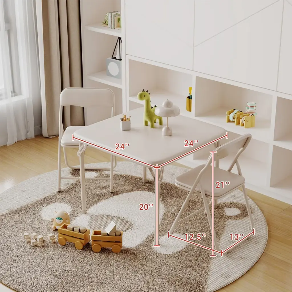Gustowave Folding Activity Table Set Of 3 - Portable Square Table With 2 Padded Cushion Chairs, Space Saving Dining Table And Chairs,beign