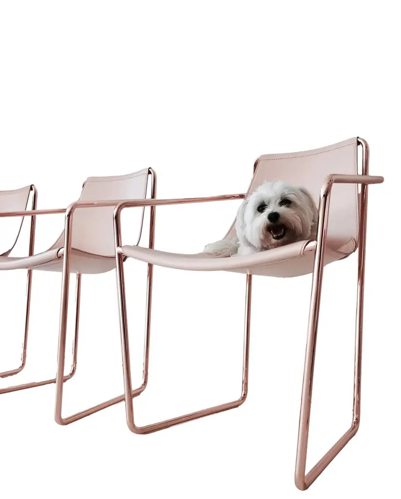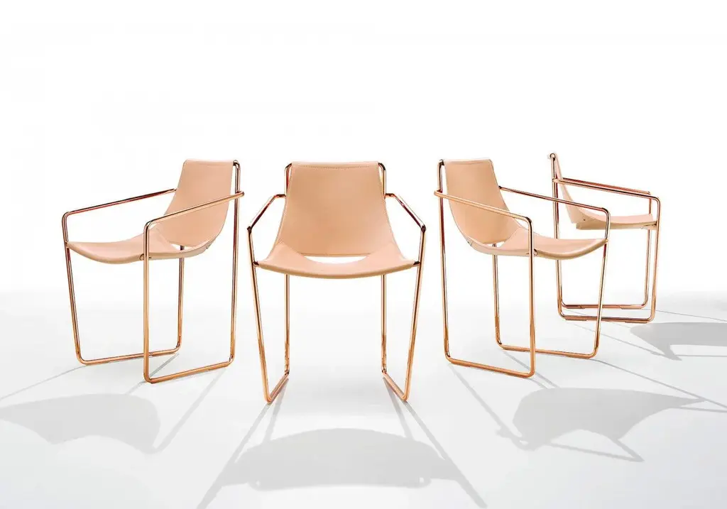 This armchair is well-regarded piece, known for its elegant, minimalist design with a blend of high-quality leather and metal. crafted from steel and leather of very high resistance and quality: high-end materials guarantee the necessary flexibility while meeting high production requirements. Materials: Sled base in lacquered steelSeat and backrest in hide.Stock Availability: Please check with us for available quantities and finishes before placing your order. We respond immediately.Also available upholstered in various fabrics, leather or C.O.M.Contact us to enquire about COM/COL production, requirements and material shipping instructions.We will be glad to check with the factory’s technical team if sizes, finishes, and colors can be customized. We do our best to expedite production and to ship and deliver product within the listed lead time, however current lead times might be longer due to global shipping backlog and delays. These delays are out of our control and cannot be a reason to cancel an order.